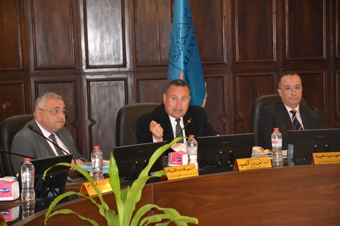 قدم الدكتور عبد العزيز قنصوه، رئيس جامعة الإسكندرية خلال إجتماع مجلس الجامعة، الشكر للسادة عمداء ووكلاء وأعضاء هيئة التدريس والهيئة المعاونة والإداريين بجميع كليات ومعاهد الجامعة، على الانضباط الكامل فى تنظيم أعمال امتحانات الفصل الدراسي الأول وإتمامها على النحو الأكمل، لافتاً إلى ضرورة الانتهاء من أعمال الكنترولات وإعلان النتائج للطلاب فى اسرع وقت، وكذا الانتهاء من كافة أعمال الصيانة المطلوبة قبل بدء الدراسة بالفصل الدراسي الثانى.
