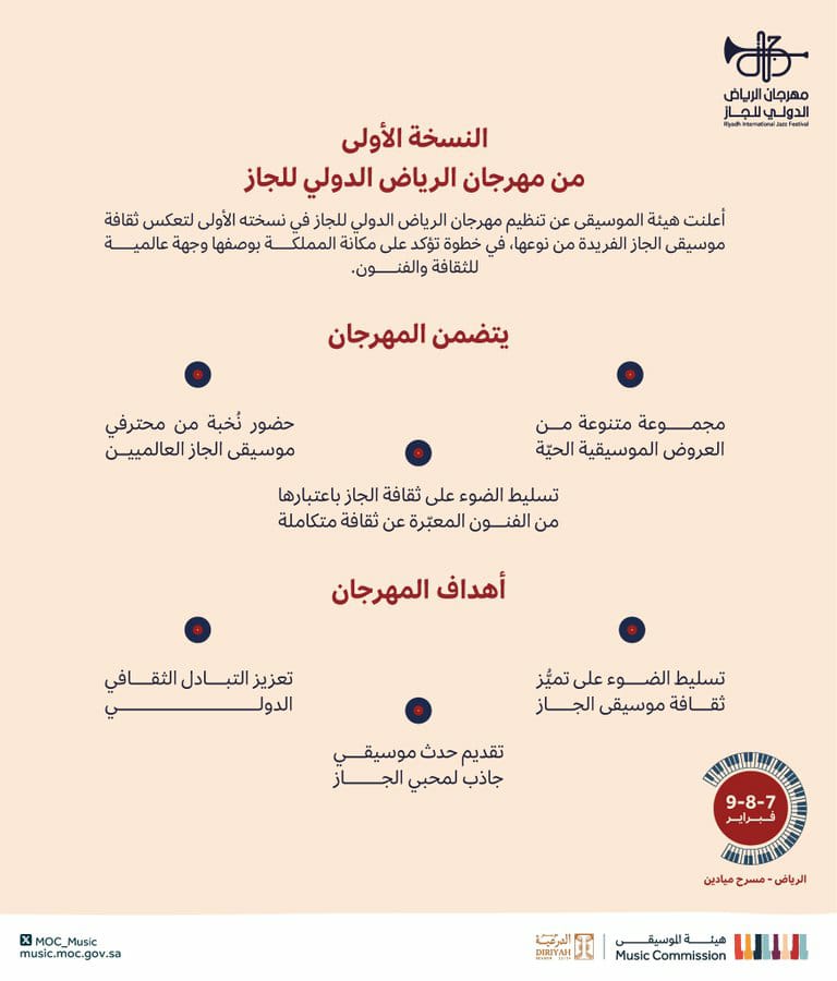 البرنامج الكامل لفعاليات الدورة الأولى من مهرجان الرياض الدولي للجاز