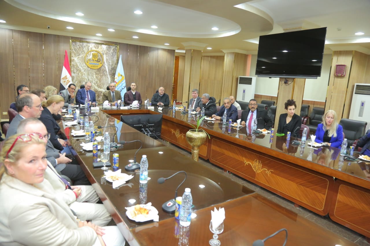 استقبل محافظ كفرالشيخ اللواء جمال نور الدين، وفد سفراء الإتحاد الأوروبى، برئاسة السفير، كريستيان برجر، سفير ورئيس وفد الإتحاد الأوروبى، اليوم الخميس، بالديوان العام، وذلك لبحث سبل التعاون وتفقد توسعات محطة معالجة مياة الصرف الصحى بمطوبس، ومشروع حماية دلتا النيل، ومتحف كفرالشيخ، وذلك بحضور عمرو البشبيشى، نائب المحافظ ، واللواء عبدالغفار الديب، السكرتير العام المساعد للمحافظة، وعدد من سفراء دول الإتحاد الأوروبى.
