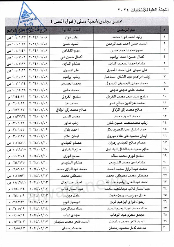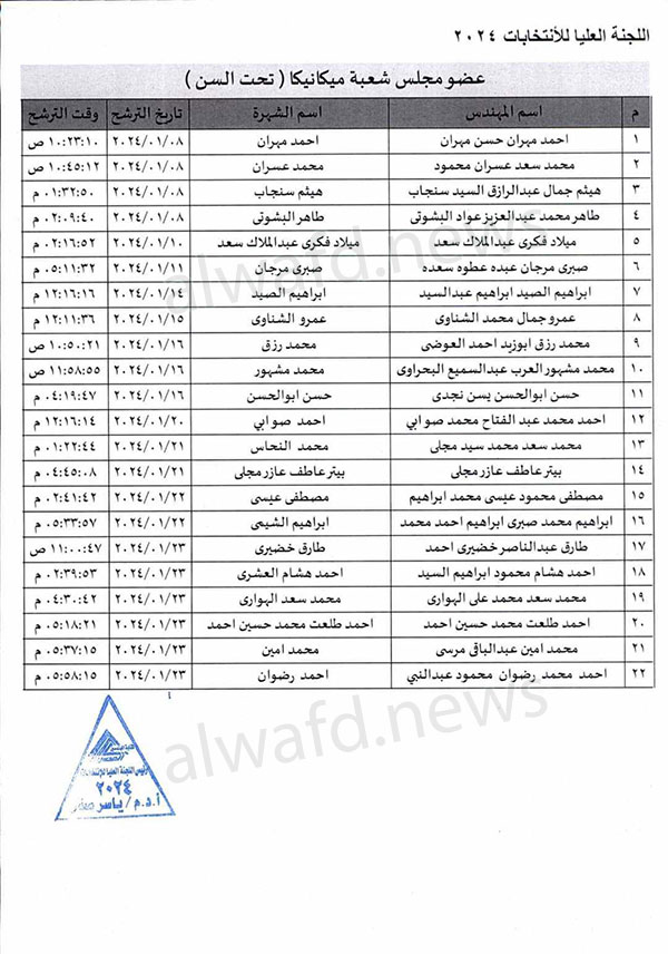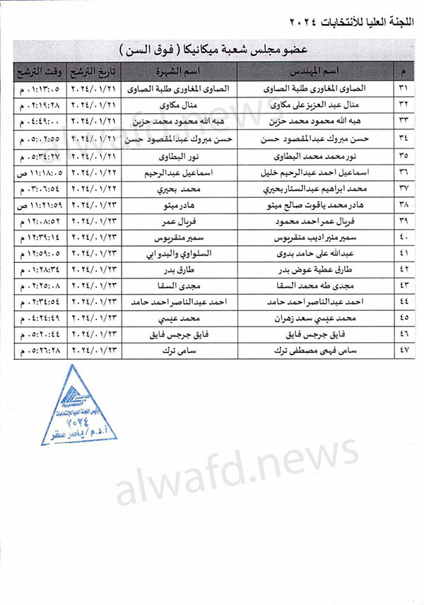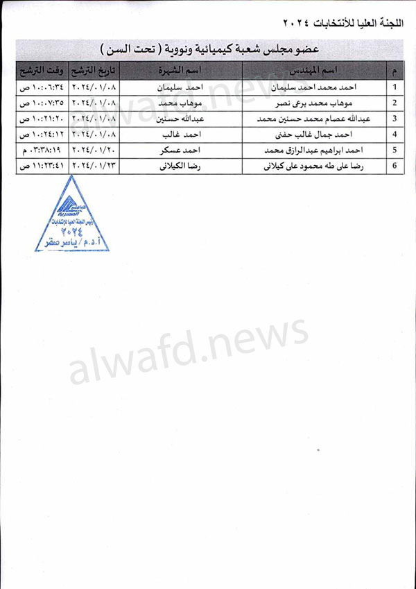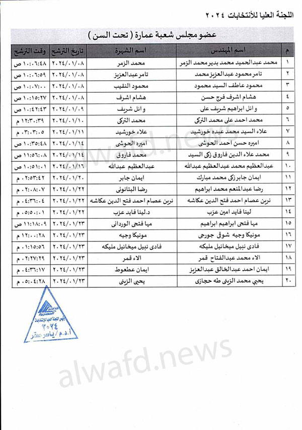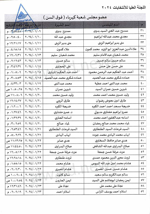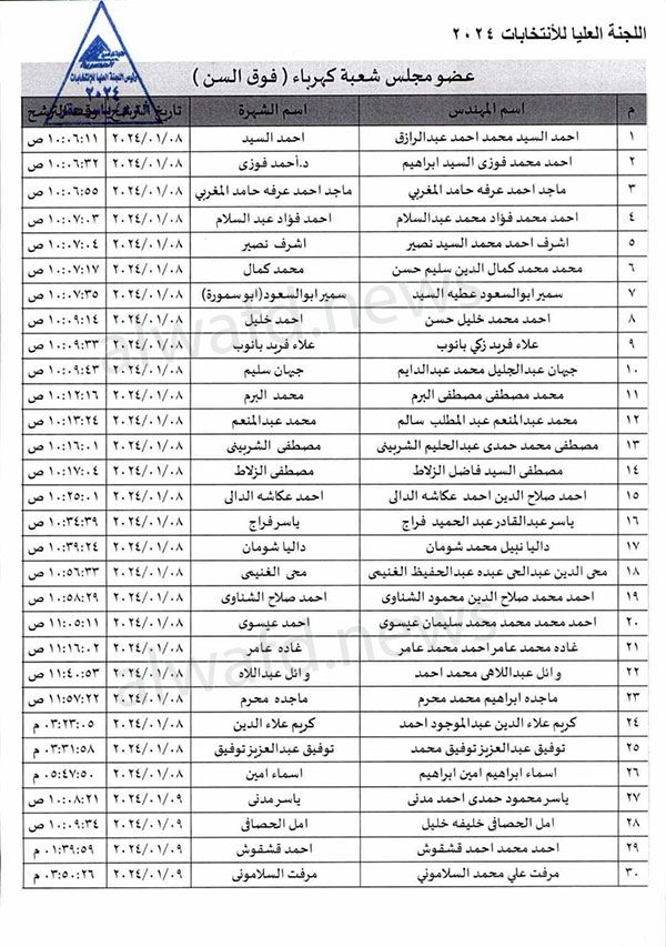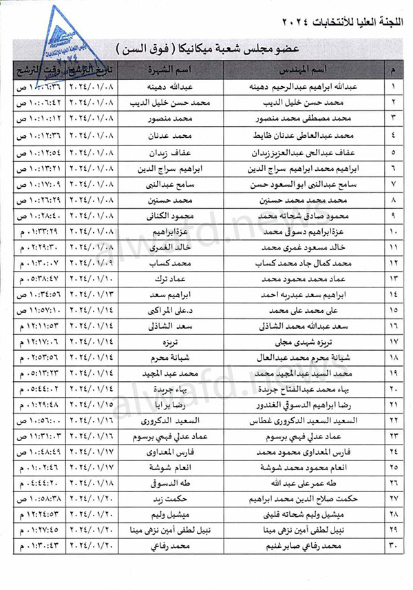 ننشر القوائم النهائية لمرشحي التجديد النصفي بالمهندسين