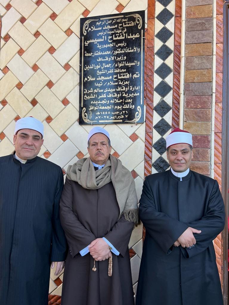أعلن محافظ كفرالشيخ اللواء جمال نور الدين،اليوم الجمعة، إفتتاح مسجد سلام بقرية تيدا بمركز سيدي سالم، على مساحة 250‪م2، وبتكلفة 3.4مليون جنيه، في إطار اهتمام وزارة الأوقاف بالمساجد، والحرص المستمر على عمارة بيوت الله وتشيدها ومواكبة الجمهورية الجديدة، تحت رعاية الدكتور، محمد مختار جمعة، وزير الأوقاف.