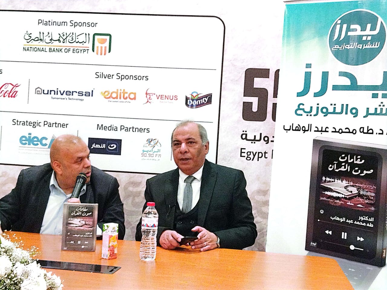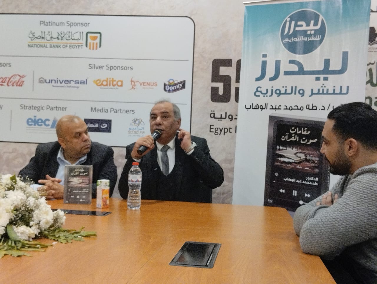 بحضور كوكبة من أهل القرآن وجمهور معرض القاهرة الدولي للكتاب في دورته الخامسة والخمسين أقيم حفل توقيع كتاب " مقامات صوت القرآن " الصادر عن شركة " ليدرز للنشر والتوزيع" لمؤلفه الدكتور طه محمد عبد الوهاب الخبير في علم الاصوات والحاصل على الدكتوراه في علم المقامات القرآنية من كلية الدراسات القرآنية جامعة الحضارة الإسلامية ببيروت.