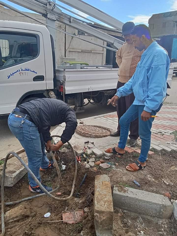 صيانة أسلاك الكهرباء وأعمدة الأنارة برأس البر تجنبا لكوارث تساقط الأمطار