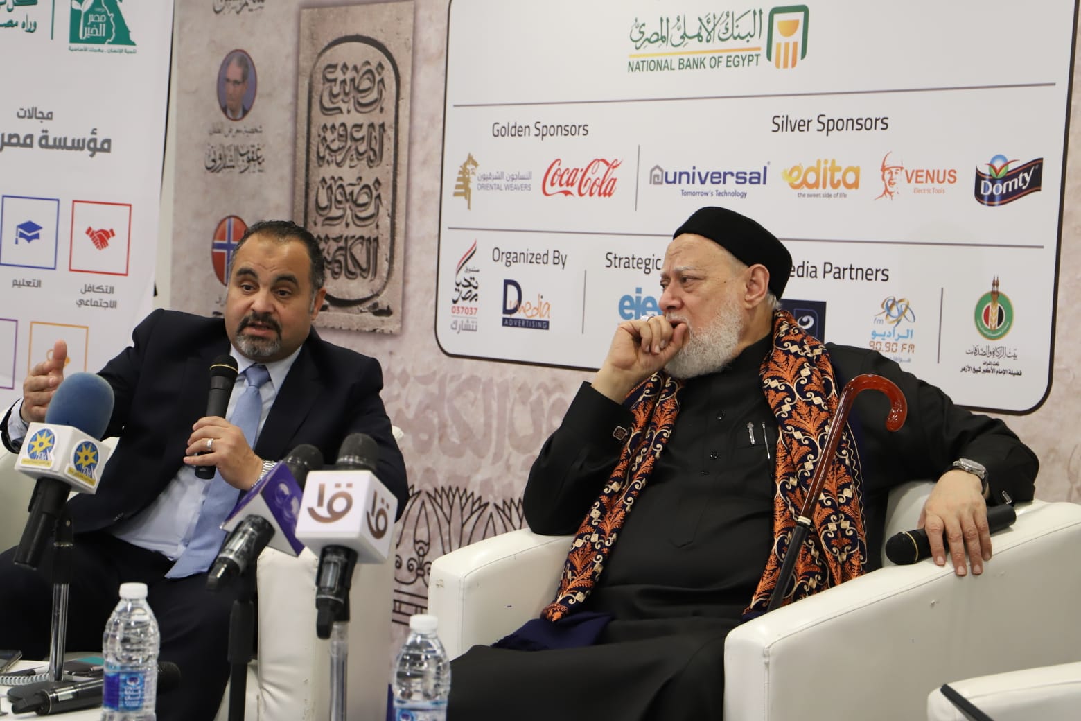 استضافت قاعة الصالون الثقافي، اليوم الأحد، ضمن فعاليات البرنامج الثقافي، لمعرض القاهرة الدولي للكتاب، بدورته الـ55، ضمن محور المؤسسات الثقافية، ندوة بعنوان «دور مؤسسة مصر الخير في التنمية المجتمعية»، بمشاركة الدكتور علي جمعة، رئيس مجلس أمناء مؤسسة مصر الخير وعضو مجلس كبار العلماء المسلمين، وأدار اللقاء الدكتور محمد ممدوح رئيس قطاع الجمعيات الأهلية.