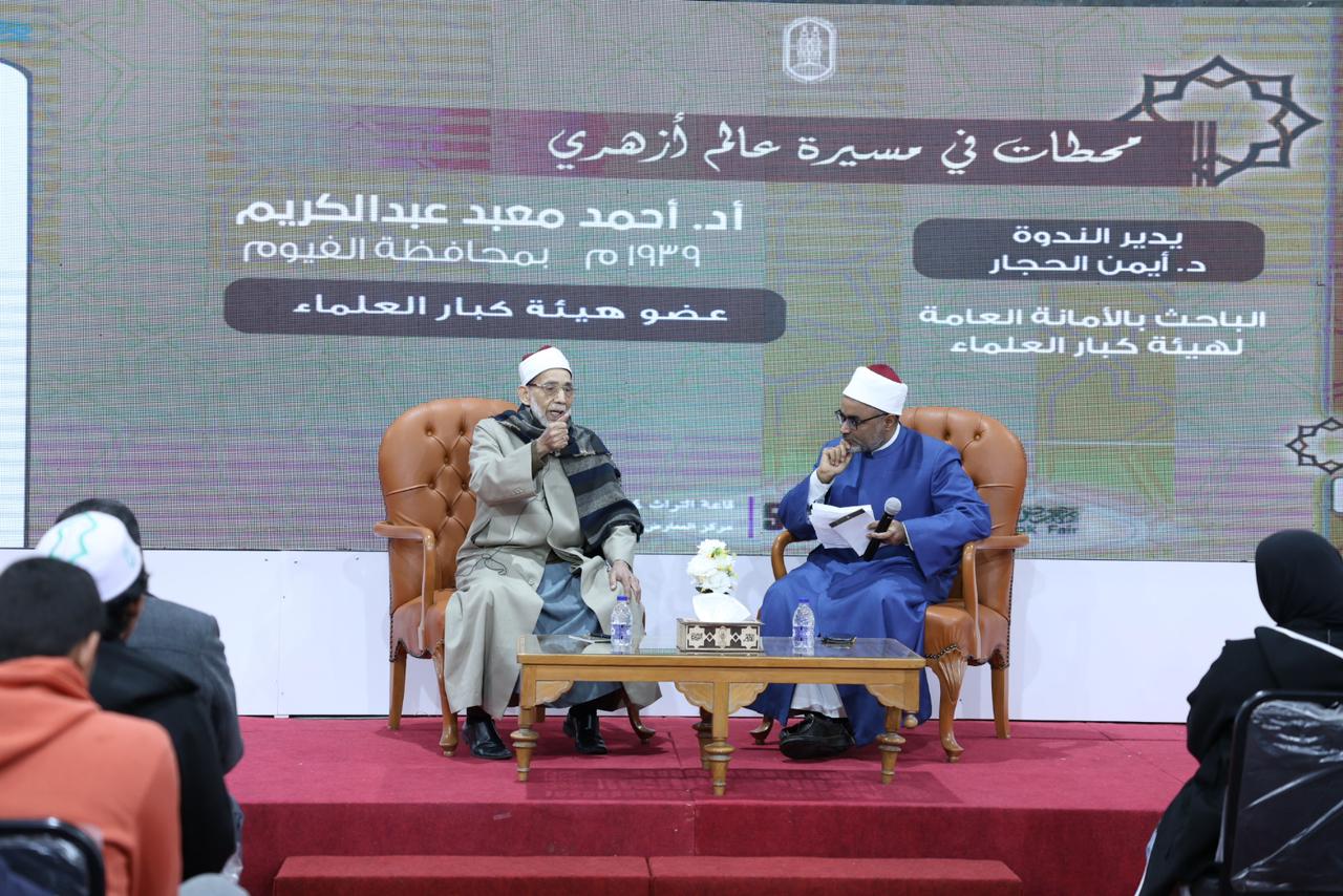اختتم جناح الأزهر الشريف بمعرض القاهرة الدولي للكتاب في نسخته ال(٥٥)، سلسة "محطات في مسيرة عالم أزهري"، التي ينظمها المركز الإعلامي للأزهر الشريف بجناح الأزهر، حيث نظم ندوة تثقيفية عن حياة فضيلة العالم الجليل المحدِّث الأستاذ الدكتور أحمد معبد عبدالكريم، عضو هيئة كبار العلماء بالأزهر الشريف، وأدارها الدكتور أيمن الحجار، الباحث بالأمانة العامة لهيئة كبار العلماء.