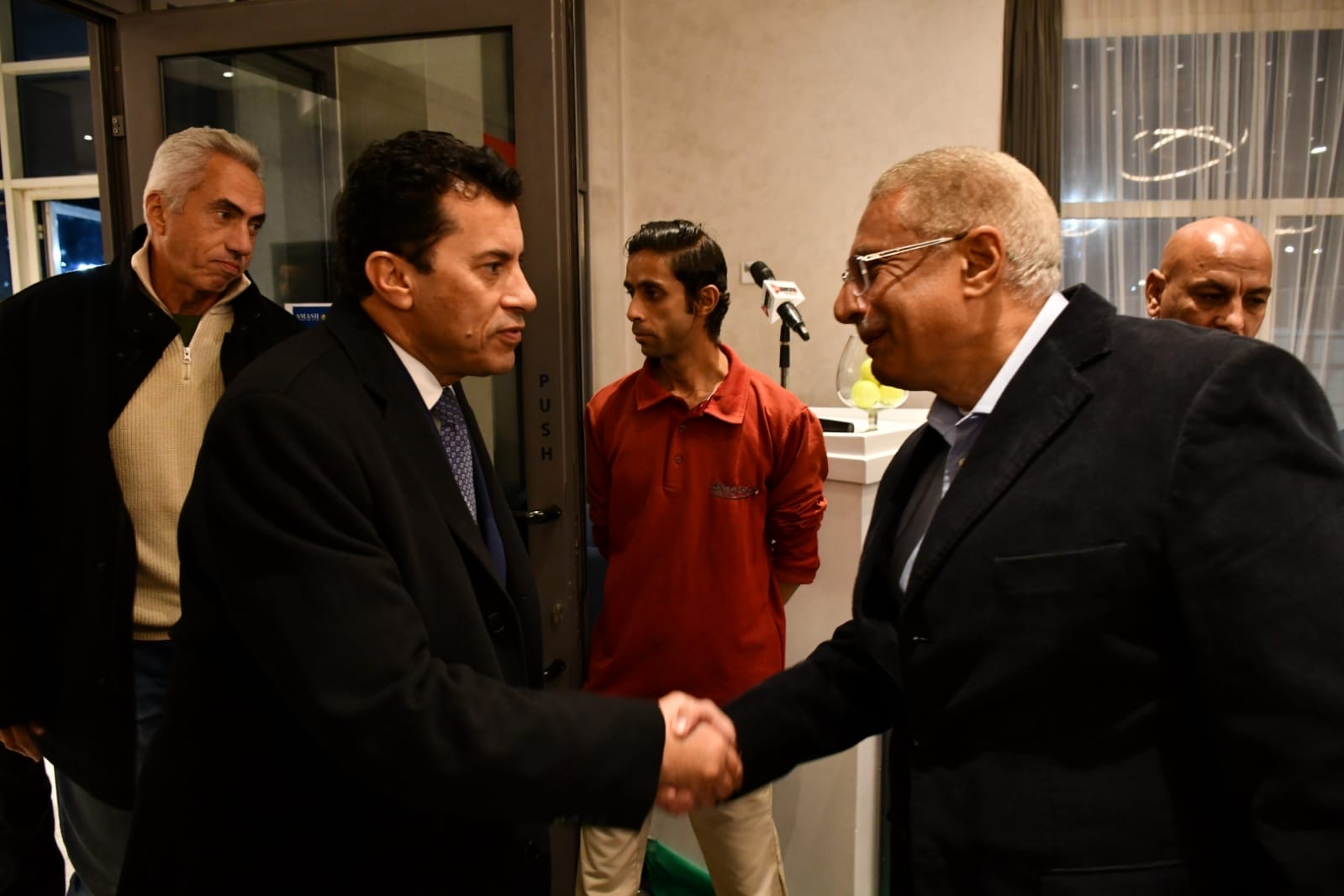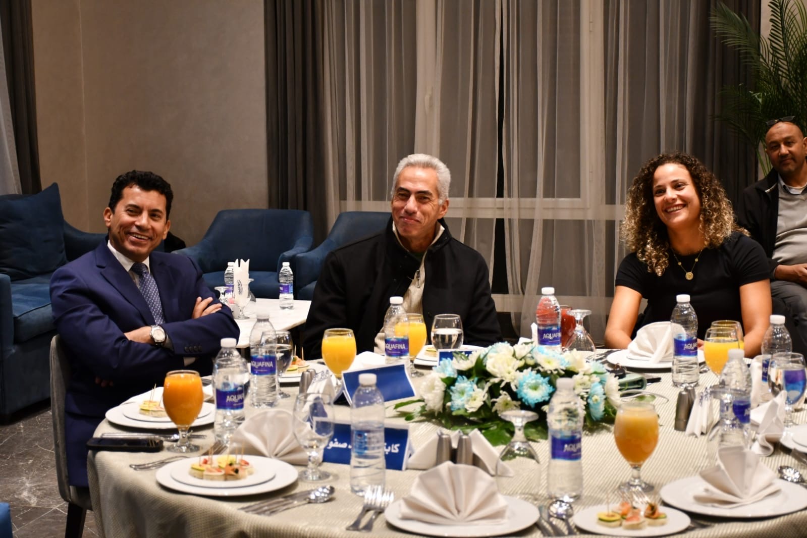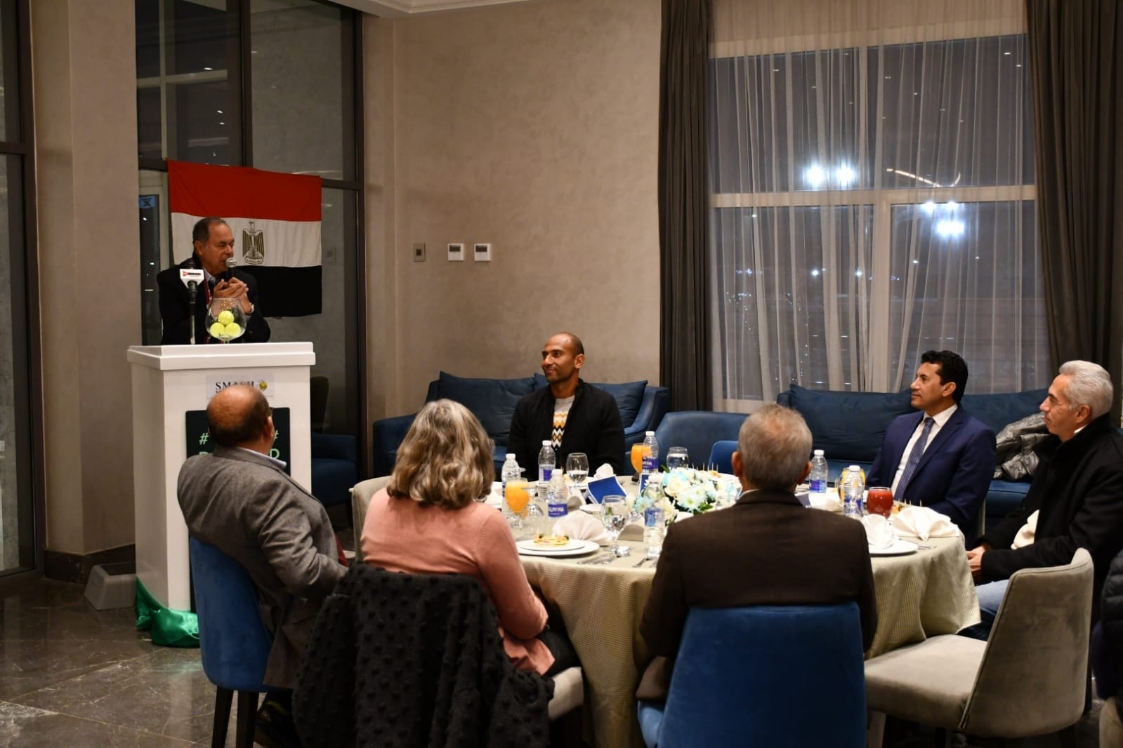 حضر التكريم؛ الكابتن إسماعيل الشافعي، رئيس اتحاد التنس، رئيس نادى هليوبوليس، النائب عمرو السنباطى، وأعضاء مجلس إدارة إتحاد التنس، عمرو السلالي رئيس نادي سماش الرياضي، والنجمة العالمية ميار شريف، وأبطال المنتخب محمد صفوت وكريم مأمون وعمرو عصراوى وأكرم السلالى ومايكل صبحى والمدير الفنى لاتحاد التنس ضياء نبيل.