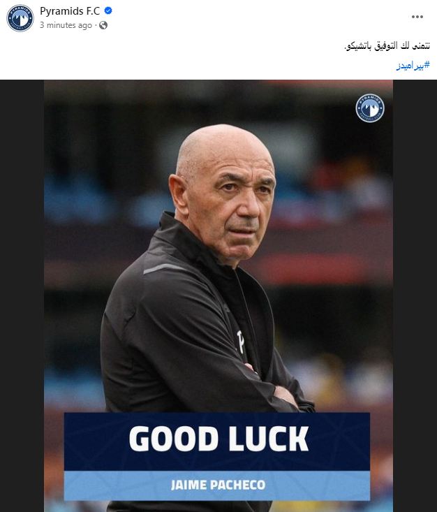 اعلنت ادارة نادي بيراميدز توجيه الشكر الى البرتغالي جامي باتشيكو المدير الفني للفريق الاول بالنادي بعد سلسلة الناتئج الغير مرضية للسماوي منذ توليه مسئولية التدريب.