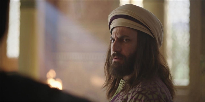 ظهر النجم نيقولا معوض في أحدث صور لمسلسل الحشاشين بشعر طويل ولحية وعباءة ويجسد نيقولا معوض خلال أحداث المسلسل شخصية عمر الخيام.