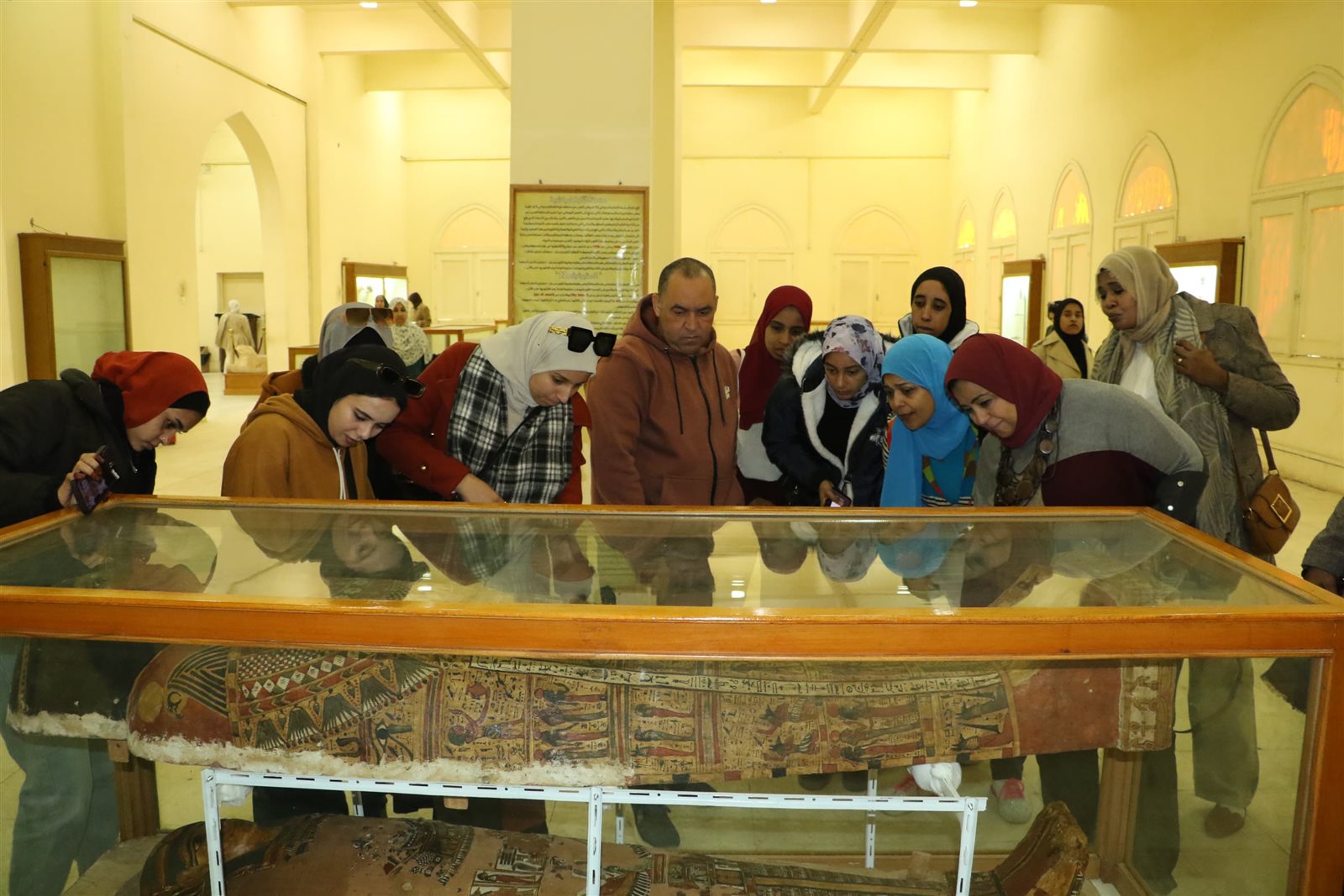 من ناحيتها عرفت إلهام جمال وكيل المتحف الفتيات بتاريخ المتحف الذي أنشئ عام 1993، ويضم حوالي 4078 قطعة أثرية، ويتكون من طابقين، الطابق الأرضي يشمل مقتنيات العصر المصري القديم والعصرين اليوناني الروماني، بينما يشمل الطابق العلوي مقتنيات العصر القبطي، والإسلامي، والعصر الحديث.