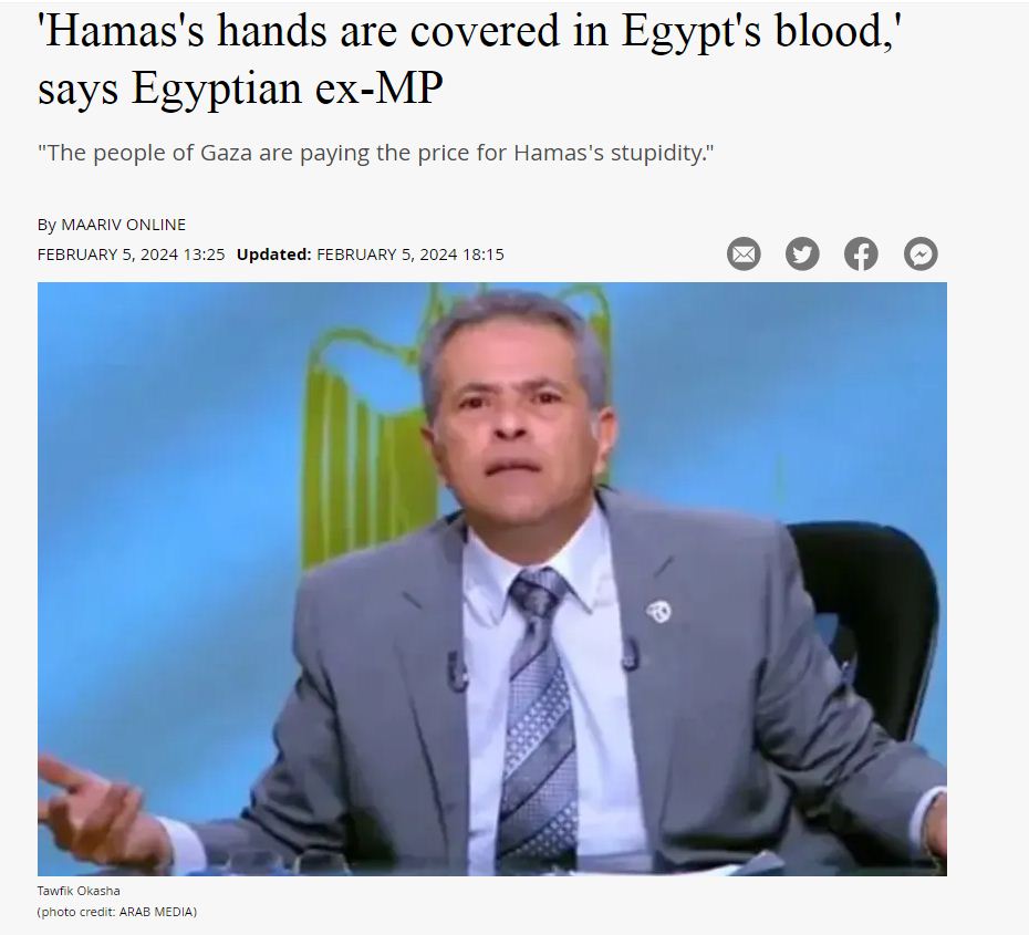 وتابع: “توفيق عكاشة المذيع في قطاع الأخبار السابق ومدير قناة الفراعين يجري حوارًا لتقديم واجب العزاء لقتلى الجانب الإسرائيلي، وكمان الفلسطينيين وقال إن حماس أياديها ملطخة بالدماء، وأن نتنياهو هو المسئول عن جرائم حماس لأنه مولهم”.