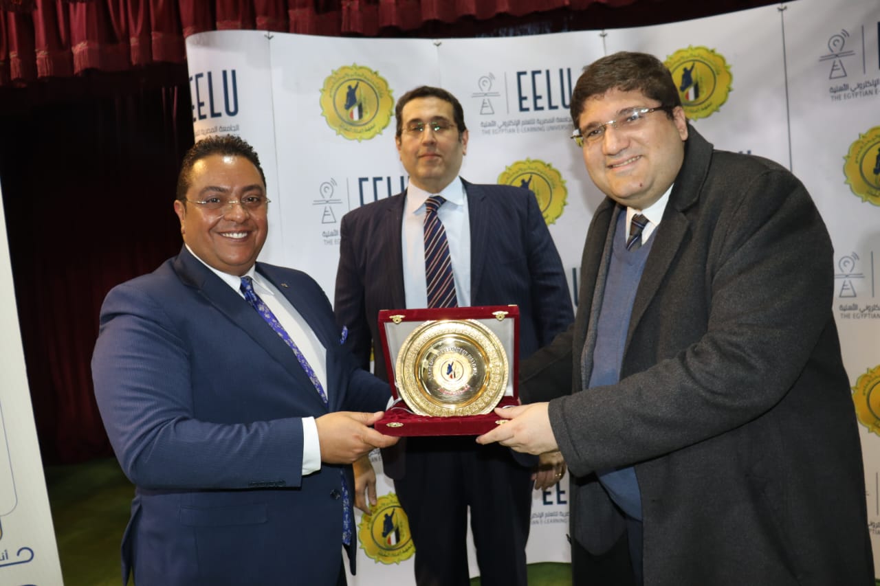 جدير بالذكر أنه خلال فاعليات اليوم تم تجديد بروتوكول التعاون بين الجامعة المصرية للتعلم الإلكتروني الأهلية، ومعهد إعداد القادة مع تبادل دروع التكريم بين الطرفين، وقامت الجامعة بتقديم دروع التكريم إلى كلاً من الأستاذ الدكتور/ أيمن فريد – مساعد وزير التعليم العالي والبحث العلمي، الأستاذ الدكتور/ سعيد عبد العزيز – محافظ الشرقية الأسبق،