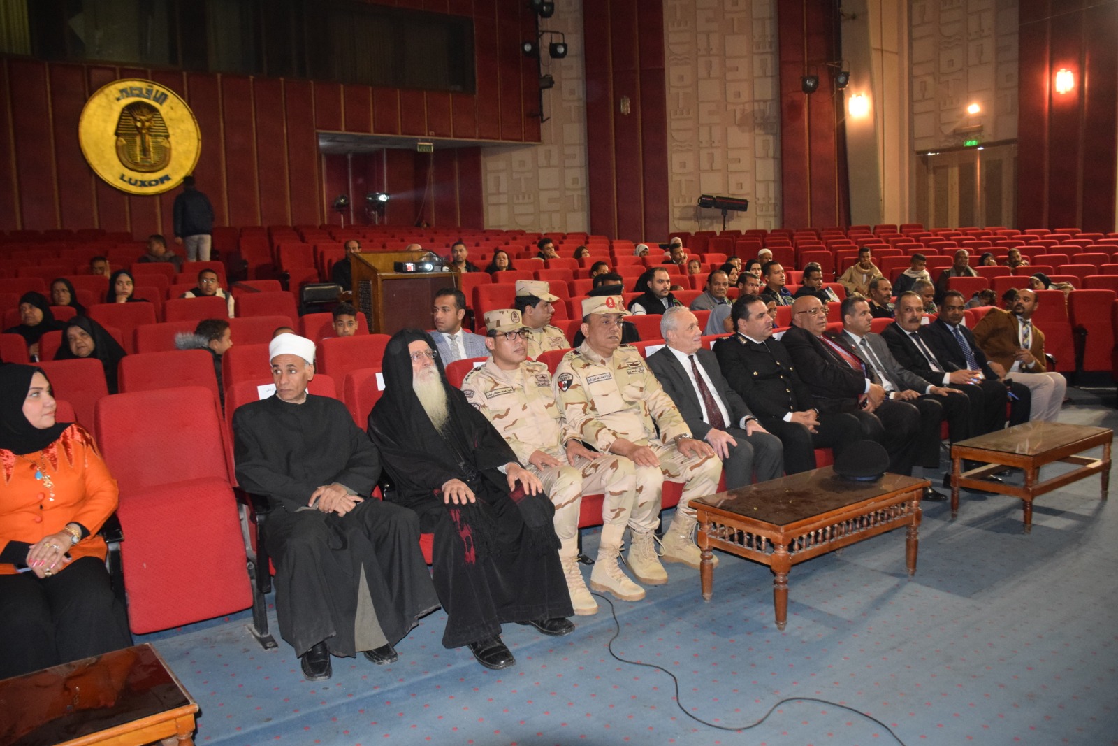 تخلل الحفل، كلمة للأزهر والكنيسة عن منزلة الشهيد، كما تم عرض فيلم تسجيلي عن الشهيد، من إنتاج إدارة الشئون المعنوية، أعقبه كلمة السيد المحافظ، وكلمة السيد مدير جمعية المحاربين القدامى، ثم قام كل من محافظ الأقصر ورئيس الجامعة ومدير جمعية المحاربين القدماء، ومدير الأمن بتكريم المصابين وأسر الشهداء.