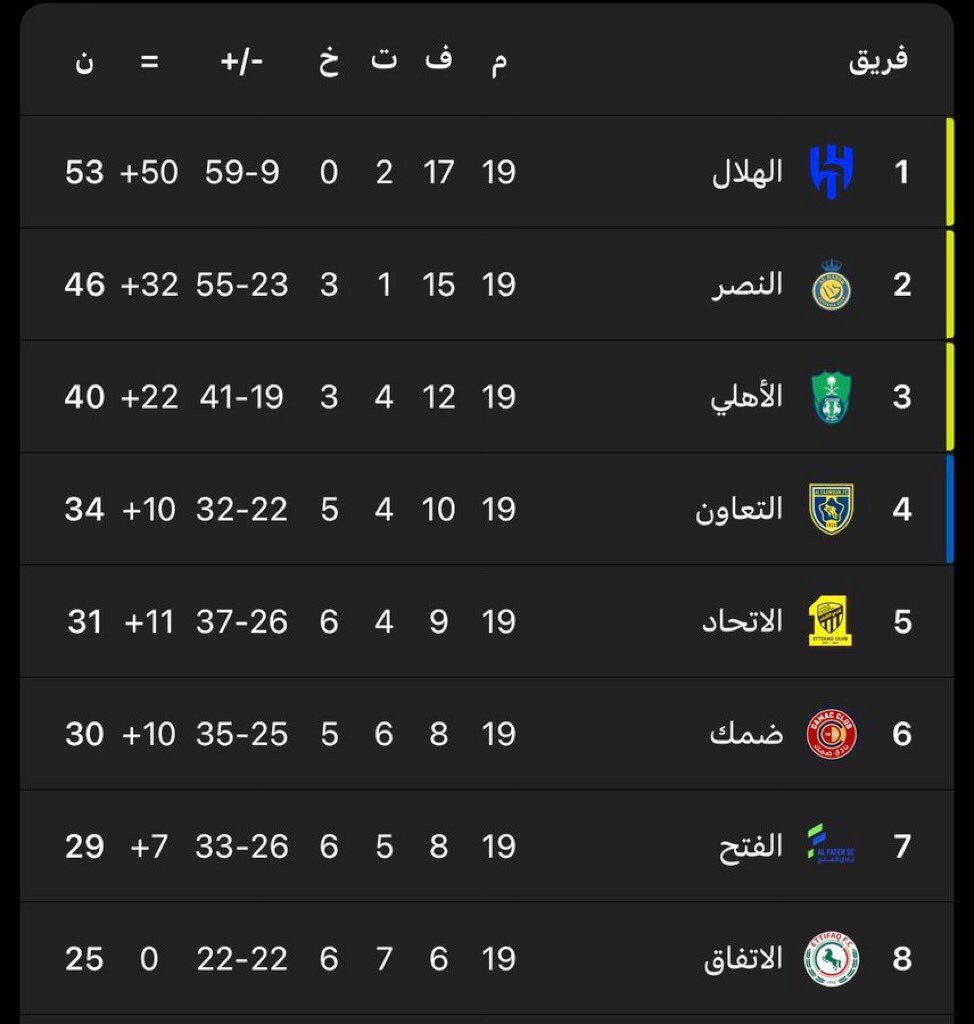ترتيب الدوري السعودي بعد فوز الاتحاد على الطائي