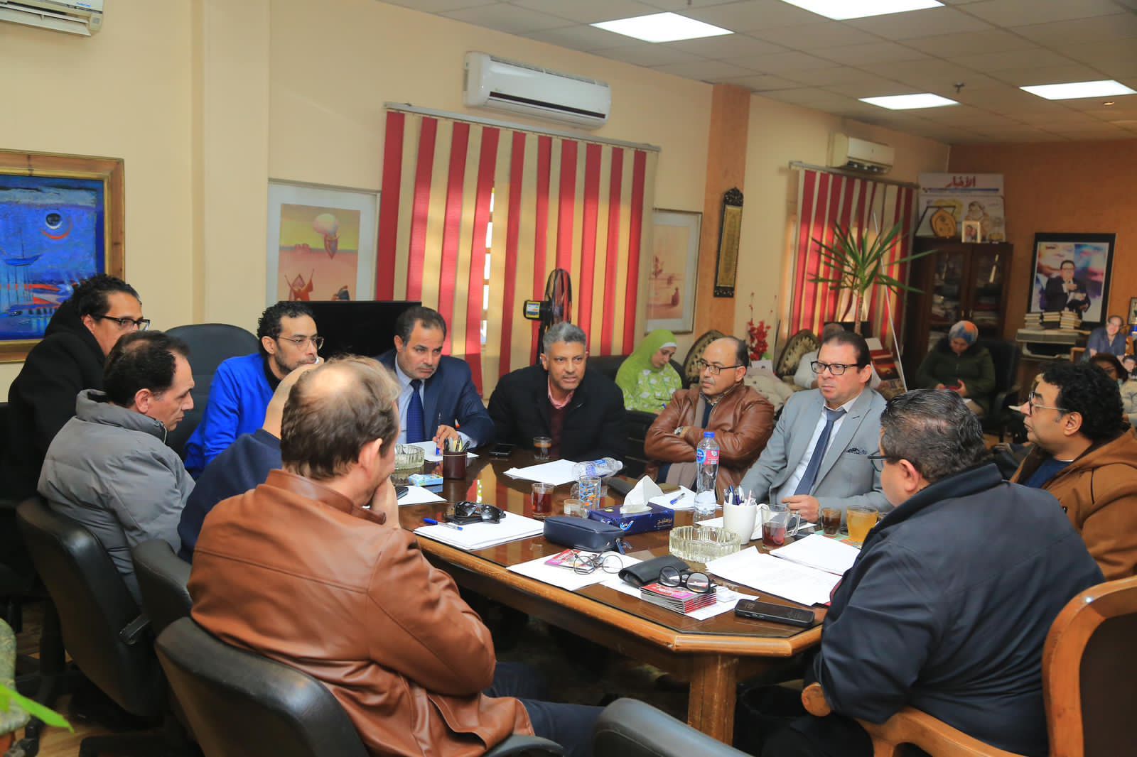 عقد المخرج خالد جلال رئيس قطاع شئون الإنتاج الثقافي والقائم بأعمال رئيس البيت الفني للمسرح، مساء أمس الأربعاء، اجتماعا مع مديري الفرق التابعة للبيت الفني للمسرح، لمناقشة خطة الإنتاج للعام الحالي لعام ٢٠٢٤.