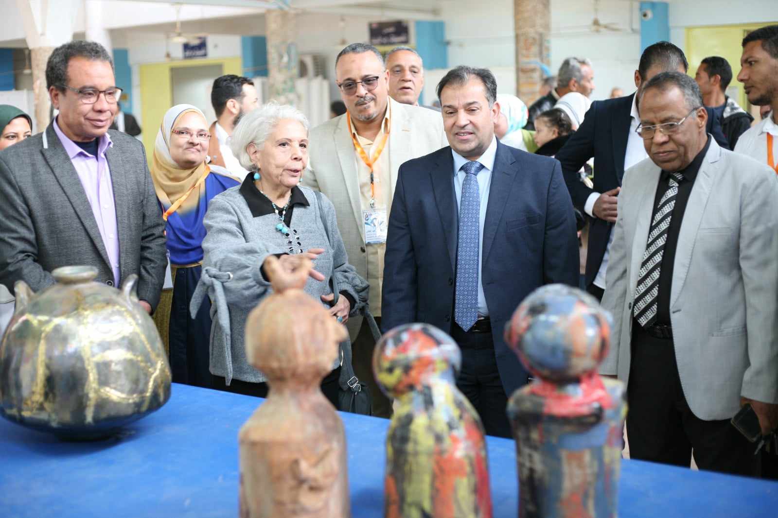 واطلع الدكتور رئيس جامعة جنوب الوادي، على معرض أعمال الفنانين المشاركين في السمبوزيوم وأبدى إعجابه بالأعمال الفنية التي تم تنفيذها بكلية التربية النوعية أثناء فترة إقامة السمبوزيوم والتي شارك في إبداعها فنانين من مصر والدول العربية كما تفقد معرض خاص بفنانى كلية التربية النوعية بجامعة جنوب الوادى.