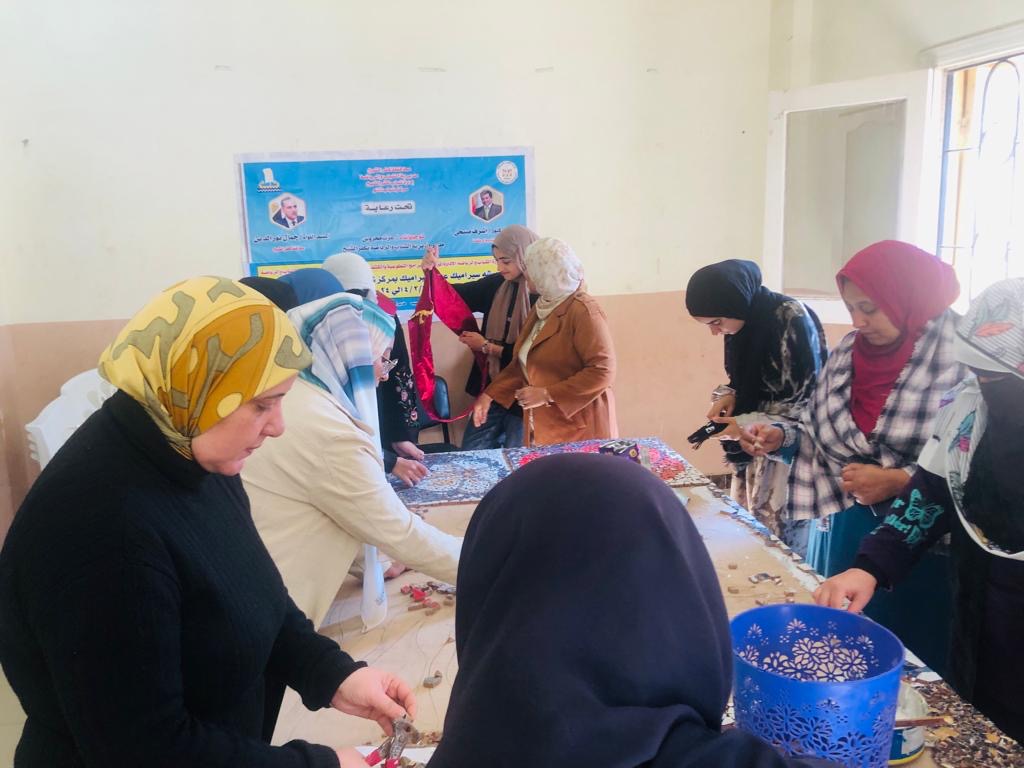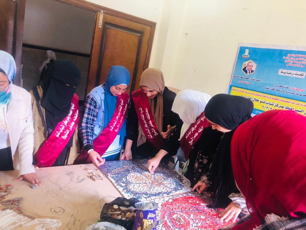 فيما انتهت فعاليات ورشة تعلين مهارات حرفة " السيراميك "، بمركز شباب شنو ، بمحافظة كفر الشيخ ، حيث تم تعريف بفن السيراميك وهو عبارة عن الزخرفة باستخدام قطع صغيرة من السيراميك، أو الرخام، أو الاحجار وفي نهايه الورشه تم عمل نماذج جدارية بأشكال مختلفة.