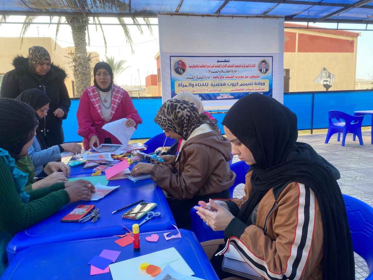 وشملت السلسلة تنفيذ ورشة "مهارات تصميم الكروت " بمركز شباب القانونية بمحافظة بورسعيد، حيث تم تدريب الفتيات والسيدات بالمركز على كيفية استخدام خانات بسيطة لعمل كروت تصلح للمناسبات .