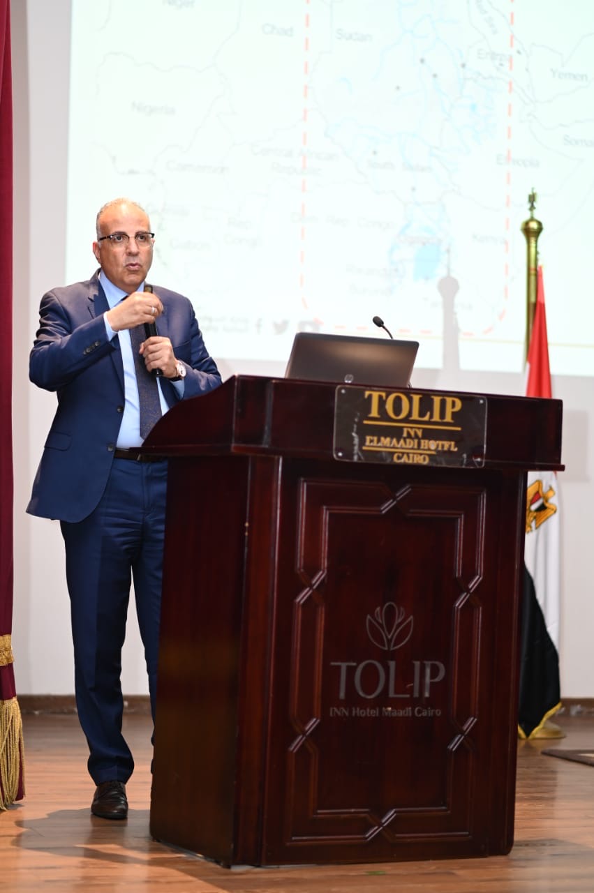 واستعرض الدكتور هانى سويلم آليات إدارة وتوزيع المياه فى مصر، وآليات الرصد والتنبؤ بالأمطار الغزيرة والسيول فى مصر والأمطار على دول حوض النيل من خلال مركز التنبؤ بالفيضان التابع للوزارة، وكذا مجهودات الوزارة المختلفة فى مجالات تطوير أنظمة المراقبة والتشغيل بالسد العالي بأحدث التقنيات وبخبرات مصرية، وأعمال حماية وتطوير نهر النيل وفرعيه من خلال أعمال التكريك وتطوير الكورنيش بعدة مواقع مع إزالة مختلف أشكال التعديات على مجرى نهر النيل، وأعمال إحلال وصيانة المنشآت المائية الكبري مثل قناطر أسيوط وقناطر ديروط، وما تم من حصر لـ 47 ألف منشأ مائي والبدء فى إجراءات صيانة وإحلال المنشآت ذات الخطورة منها، ومشروعات صيانة وتأهيل محطات الرفع، وأعمال تأهيل الترع بإجمالى 7500 كيلومتر حتى الآن بخلاف 3600 كيلومتر جار العمل بهم، ومشاركة الوزارة فى مبادرة "حياة كريمة" بتأهيل 3121 كيلومترا من الترع، وتوفير 147 قطعة أرض لإقامة مشروعات خدمية عليها بمراكز المبادرة، وجهود الدولة فى مجال الموارد المائية غير التقليدية وتنفيذ محطات كبرى لمعالجة مياه الصرف الزراعي مثل محطات الحمام وبحر البقر والمحسمة، وإجراءات تحقيق الإدارة الرشيدة للمياه الجوفية، وأعمال الحماية من أخطار السيول بإجمالى 1620 منشأ، وأعمال حماية الشواطئ المصرية سواء بالطرق التقليدية أو بالطرق الطبيعية والتى تعد خطوة هامة على المستوي العالمي فى مجال تطبيق الحلول الصديقة للبيئة عند تنفيذ المشروعات.