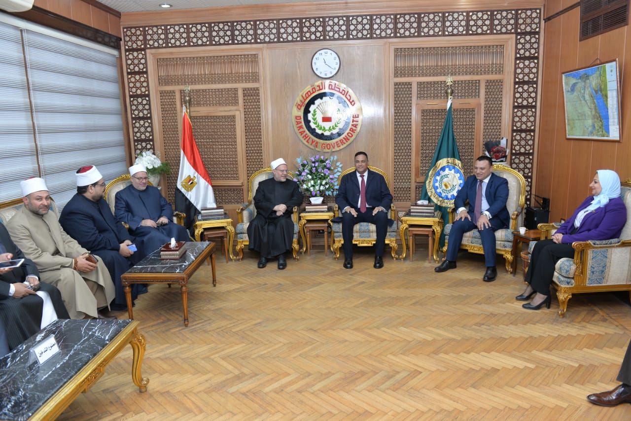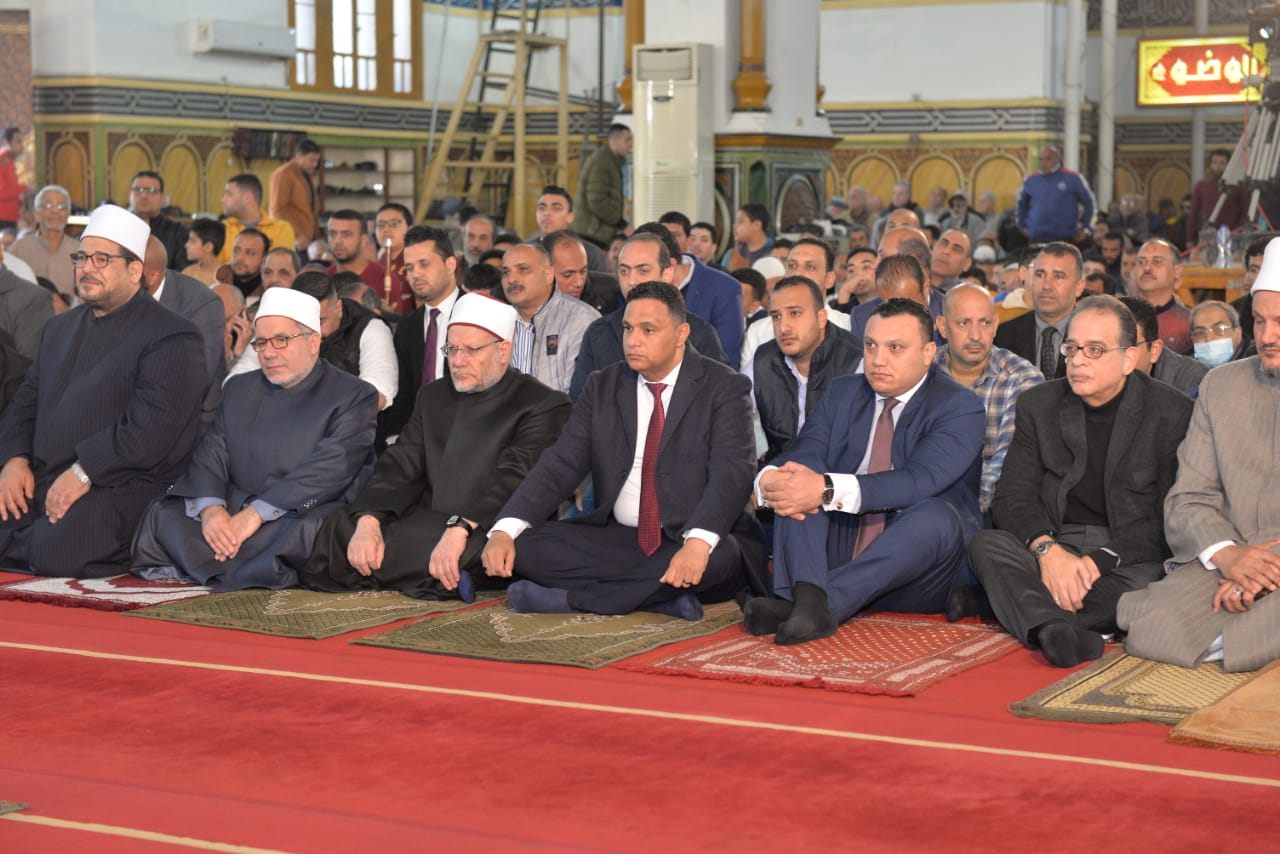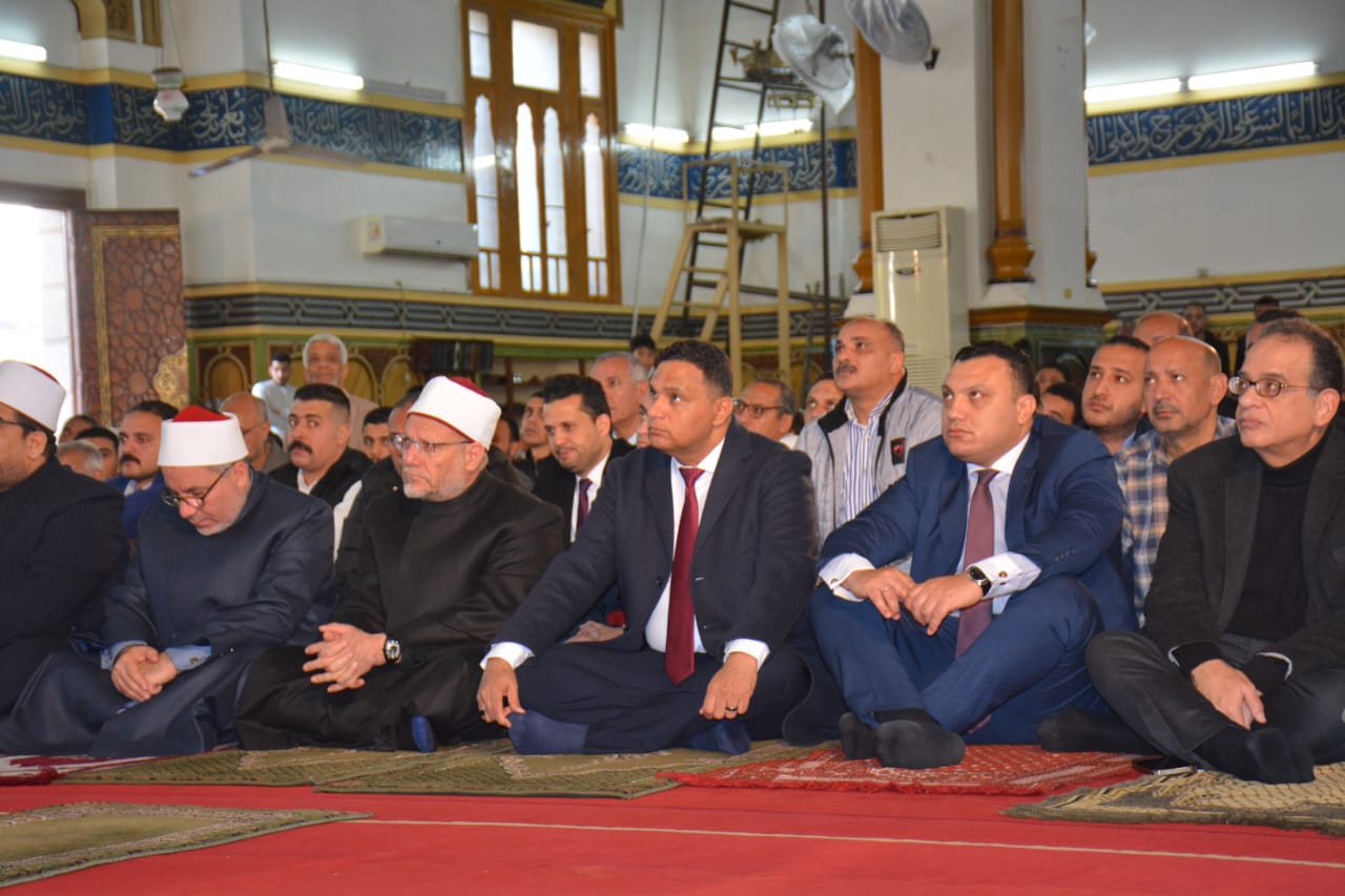 محافظ الدقهلية يستقبل مفتي الجمهورية ويؤدون صلاة الجمعة بمسجد النصر
