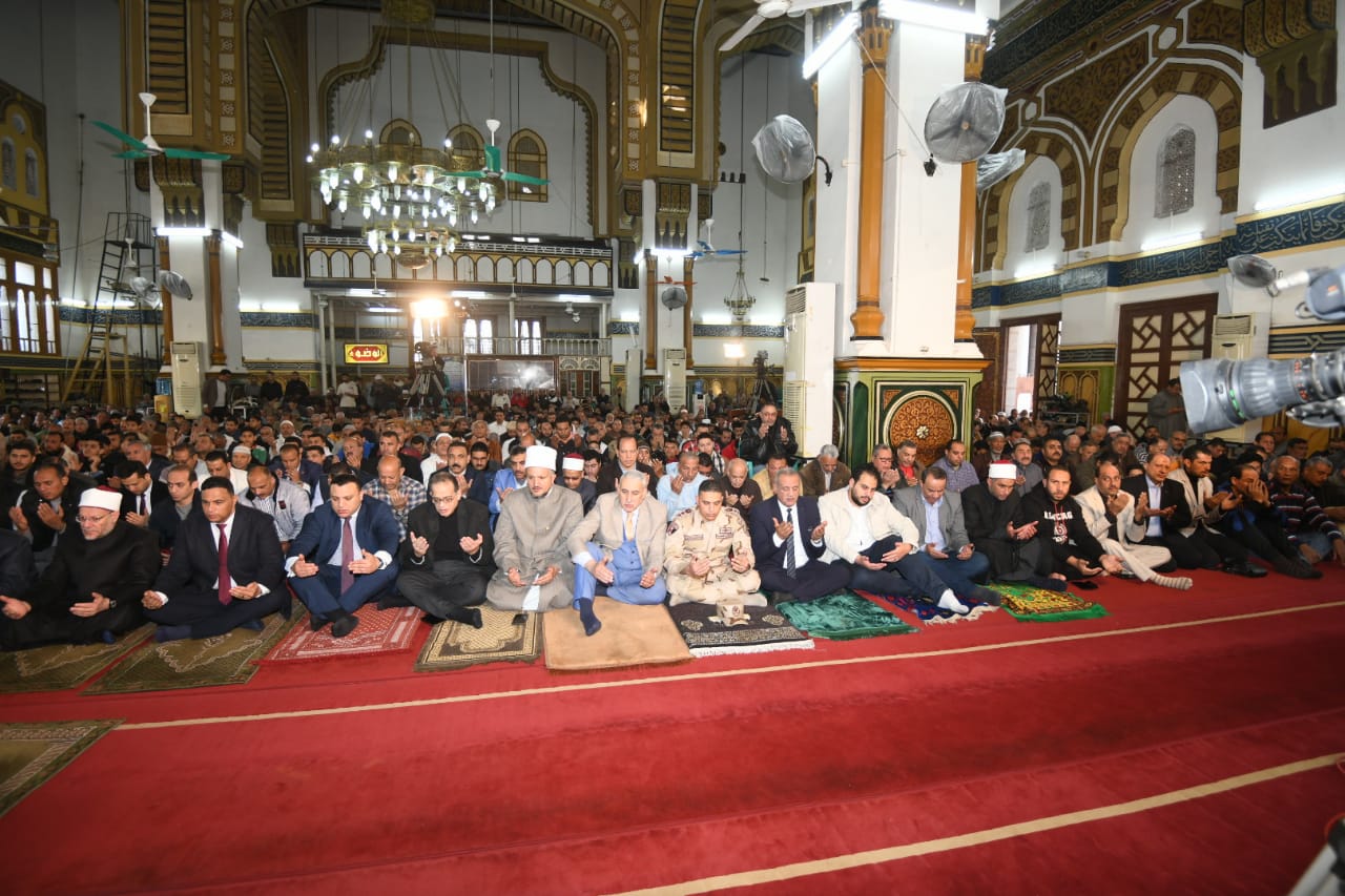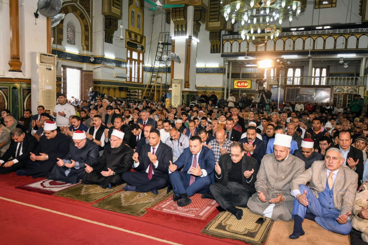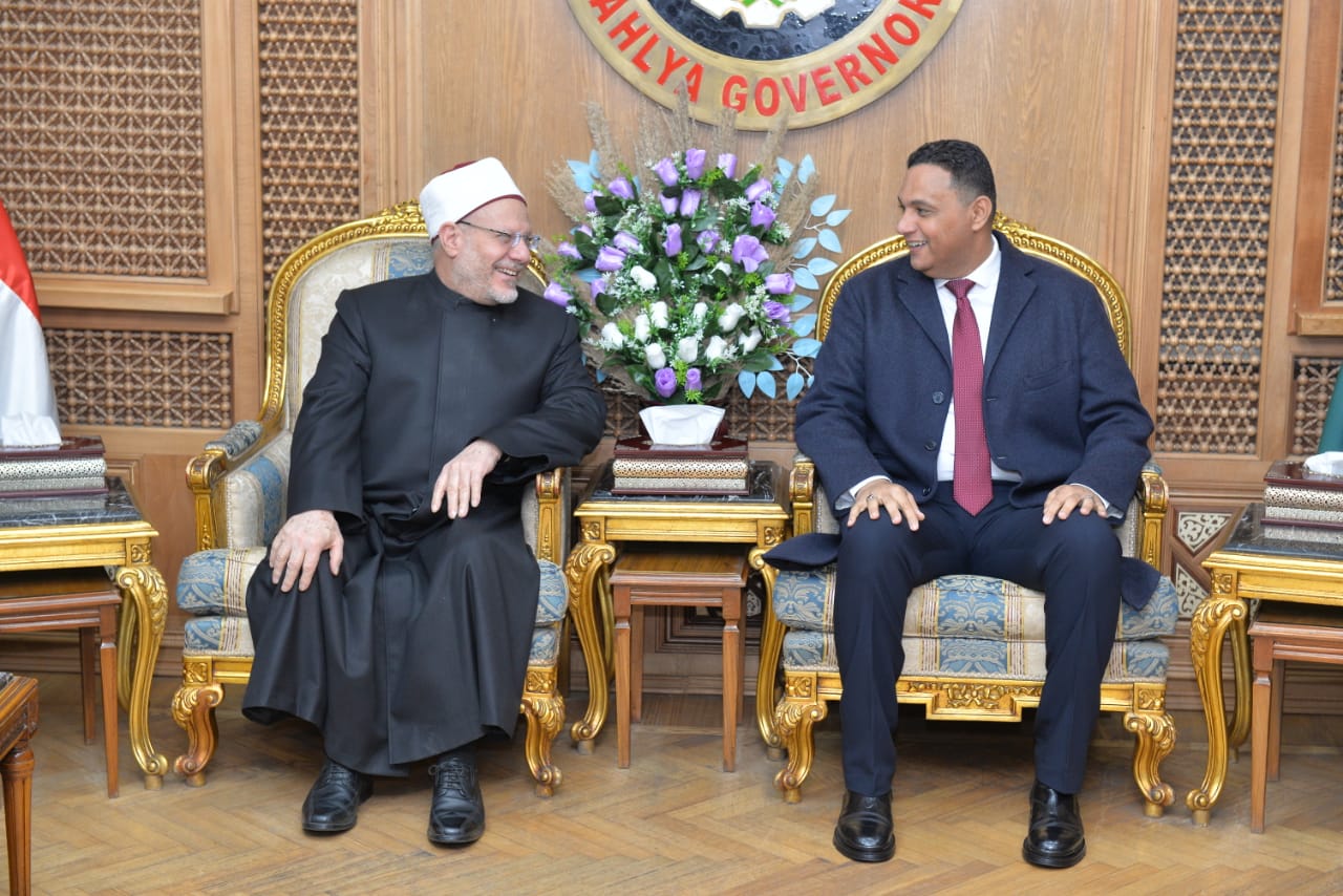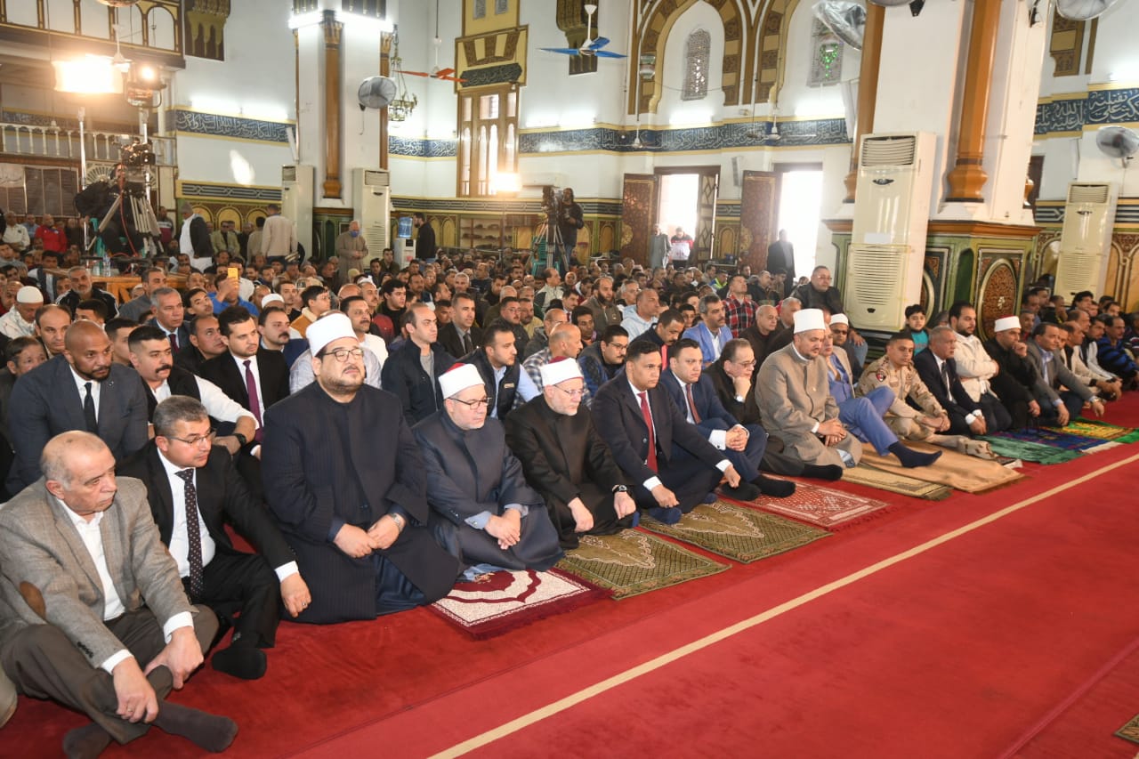 محافظ الدقهلية يستقبل مفتي الجمهورية ويؤدون صلاة الجمعة بمسجد النصر