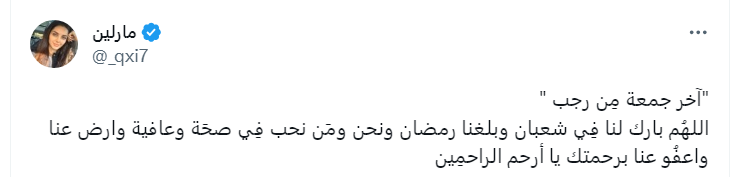 وفي آخر جمعة من رجب.. "اللهم بارك لنا فِي شعبان وبلغنا رمضان ونحن ومن نحب في صحة وعافية وأرضِ عنّا واعفو عنّا برحمتك يا أرحم الراحمين، واللهم أصلح أمورنا وأكتب لنامن خفايا القدر أجملها..وأجعل لنا نصيبا في ساعة الرزق وقضاء الحاجات وإجابة الدعوات ..اللهم لطفك بقلوبنا وأحوالنا وأيامنا..إنك على كل شيء قدير ..اللهُّم صلِّ وسَلْم عَلْى سيَدنآ مُحمد ﷺ".