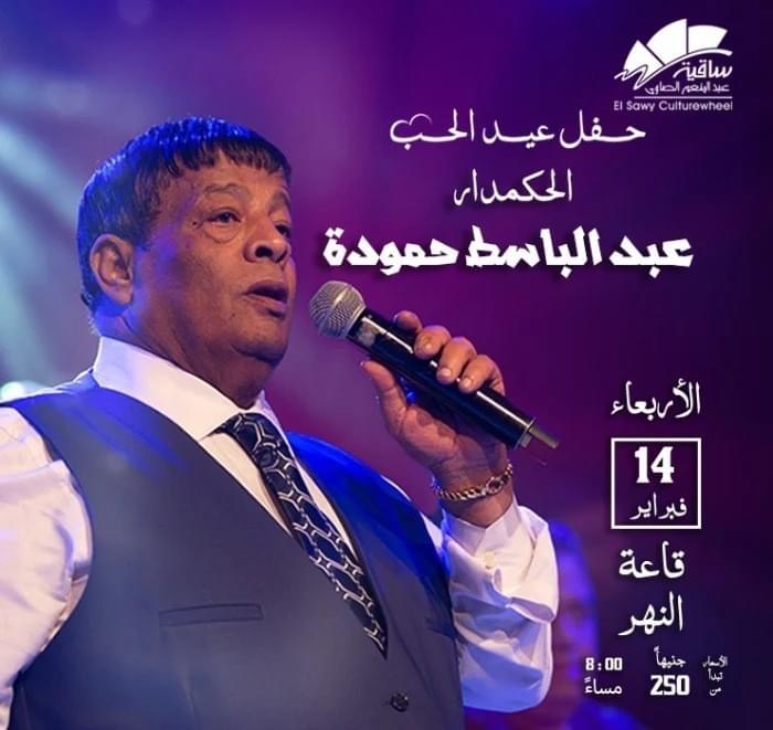 يستعد حكمدار الأغنية الشعبية عبدالباسط حمودة، لإحياء حفل غنائي بمناسبة عيد الحب، وذلك يوم 14 فبراير في ساقية الصاوي بالزمالك.