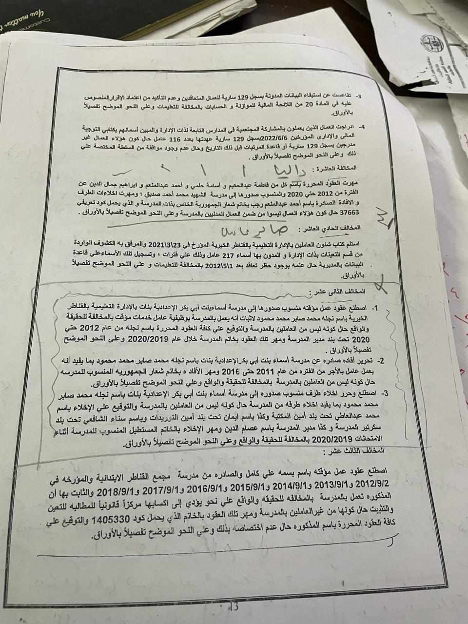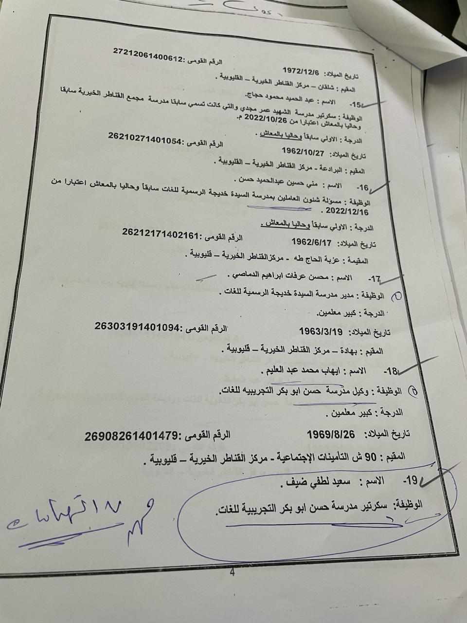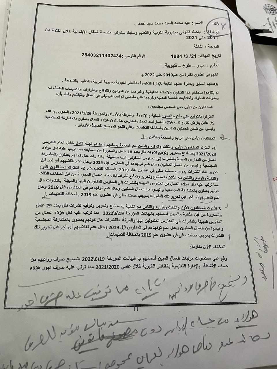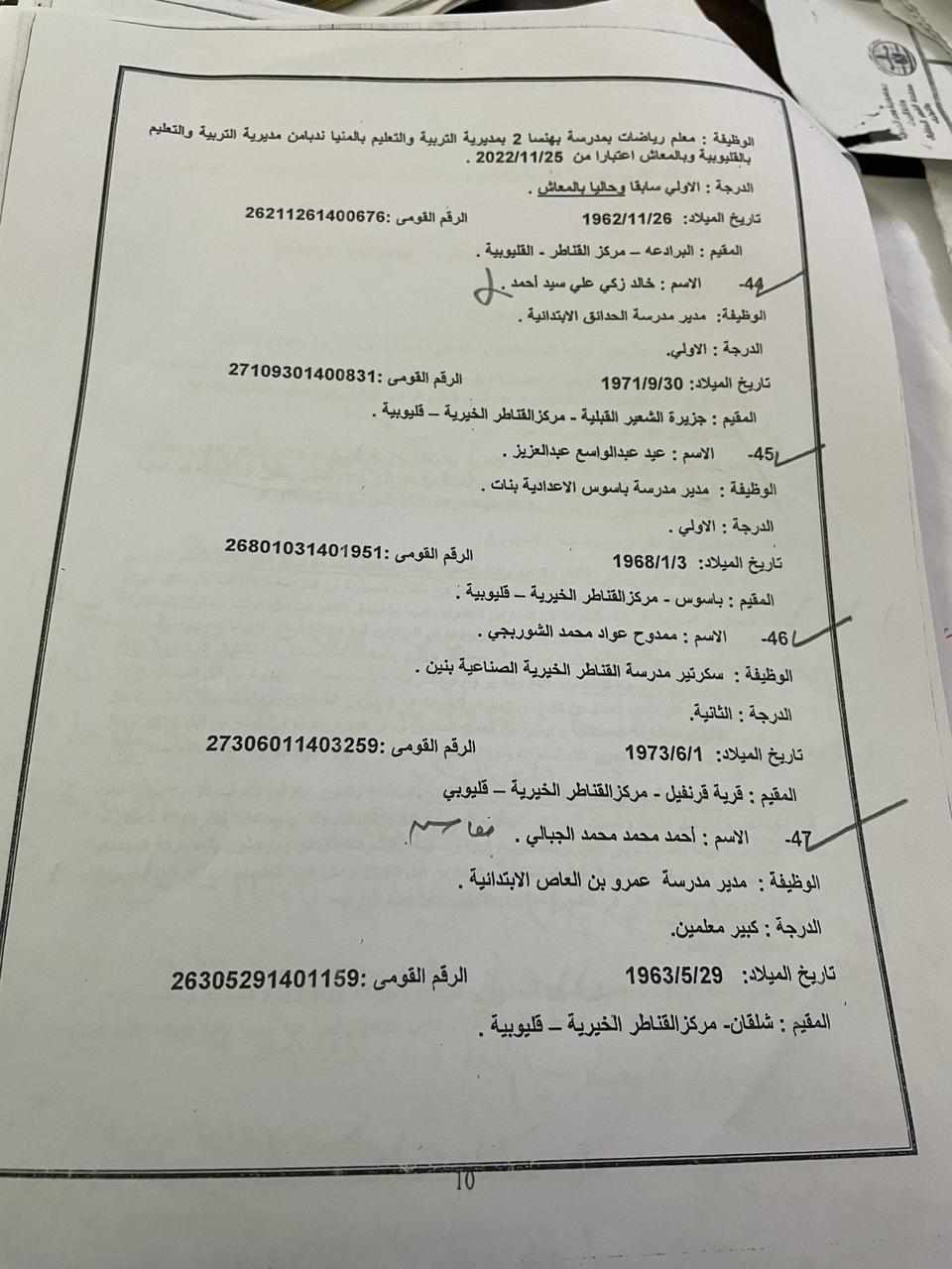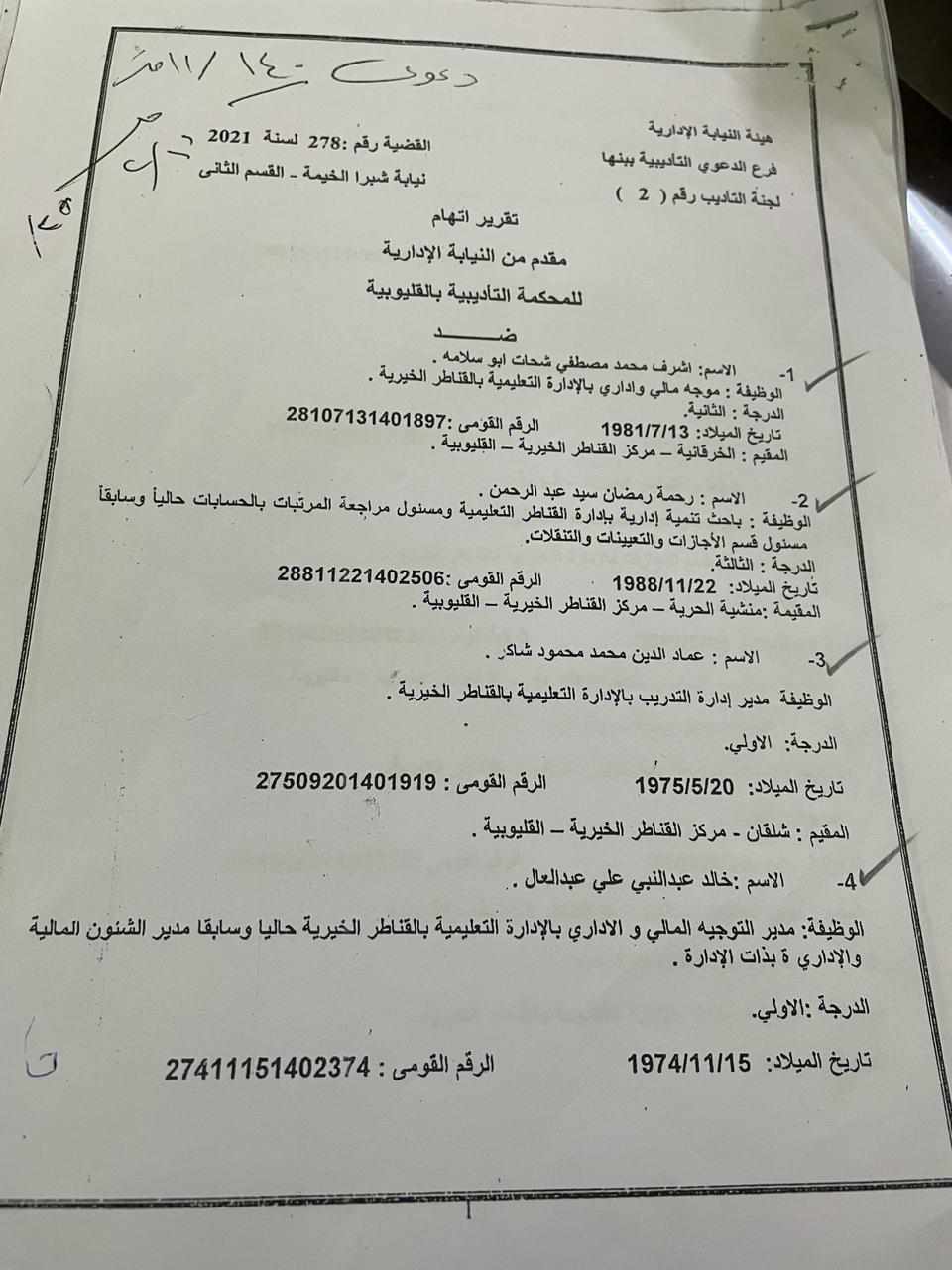 إحالة 48 قيادة تعليمية بأدارة القناطر الخيرية إلى المحكمة التأديبية