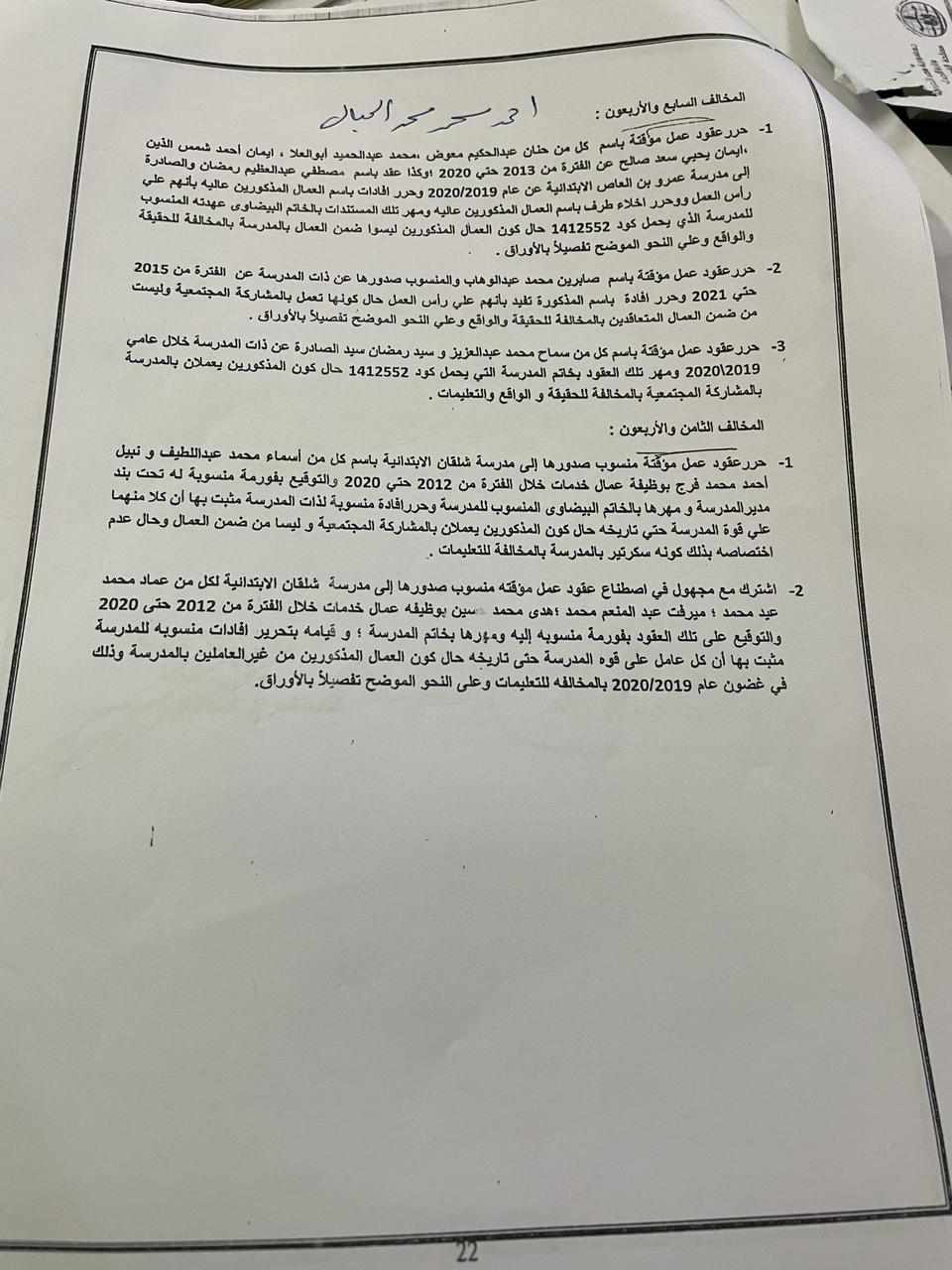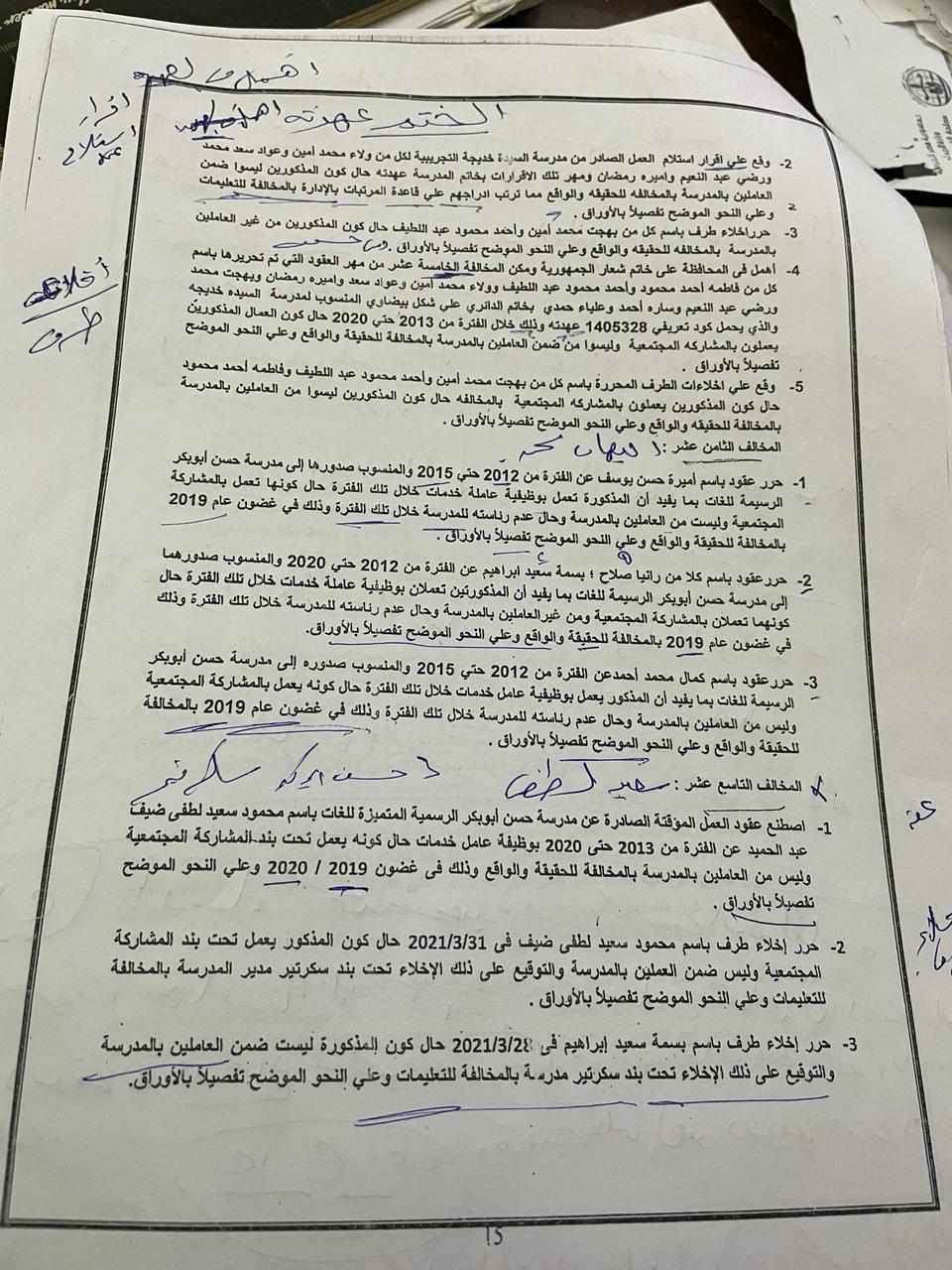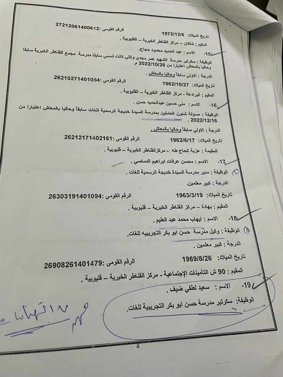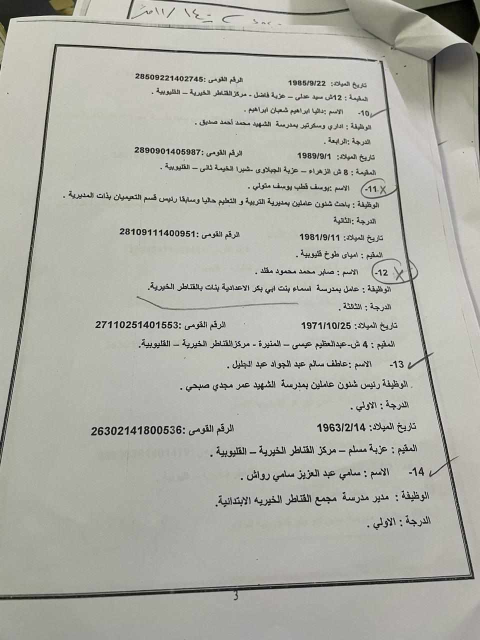 استمرارا لفساد التعليم بالقليوبية وتجاهل عملية الإصلاح الذي ينادى به رئيس الجمهورية دائما فقد تم إحالة 48من أصحاب الوظائف الإشرافية من اداره القناطر الخيريه الي المحكمة التاديبية بوقائع تزوير وافادت لعمال المدارس والذين يعملون بالجهود الذاتية علي أنهم يتقاضون رواتبهم من الوزاره مما اكسبهم صفة رسمية وقام البعض برفع قضايا للتثبيت ومنهم من حصل علي حكم .