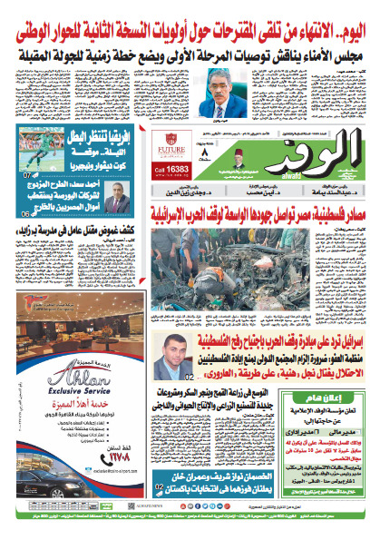 تنشر جريدة الوفد في عددها الصادر غدًا الأحد، العديد من الموضوعات والتقارير الاخبارية المهمة، أبرزها: “اليوم.. الانتهاء من تلقي المقترحات حول أولويات النسخة الثانية للحوار الوطني”.