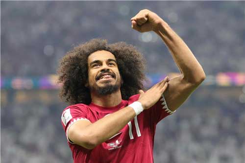 ليرفع معدل مساهمة التهديفية، مع العنابي في كأس أمم آسيا في النسختين الأخيرتين، إلى 22 مساهمة، حيث سجل 9 أهداف وصناعة 13.