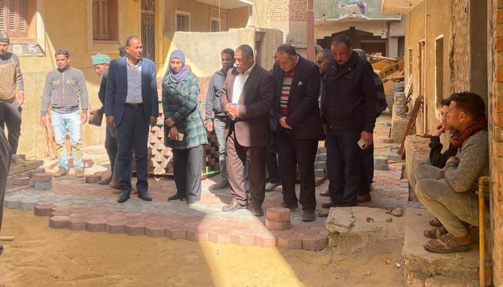 رئيس مركز أبشواي بالفيوم يتفقد أعمال تركيب الإنترلوك بالشوارع