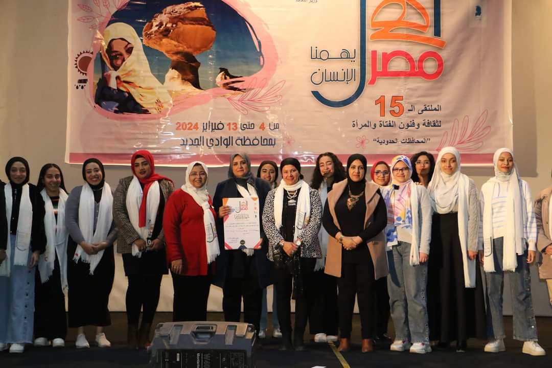 اختتمت فعاليات الملتقى الثقافي الخامس عشر للفتاة والمرأة ضمن مشروع "أهل مصر"، اليوم الاثنين، بسينما هيبس بمدينة الخارجة، الذي أقيم برعاية الدكتورة نيفين الكيلاني وزيرة الثقافة، وشهد الحفل الختامي للملتقى اللواء محمد الزملوط محافظ الوادي الجديد.