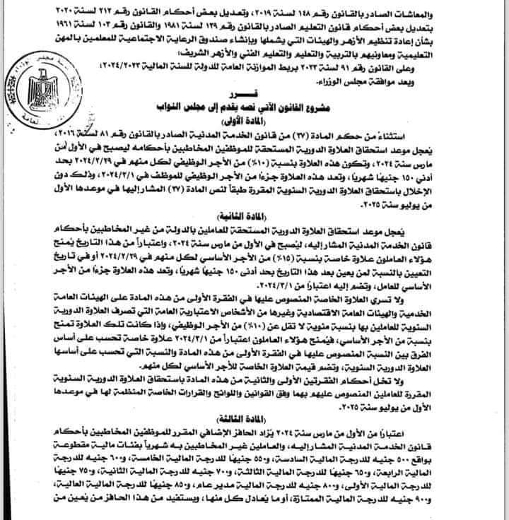 الوفد تنفرد بنشر تفاصيل مشروع قانون تعجيل العلاوة الدورية أول مارس !!