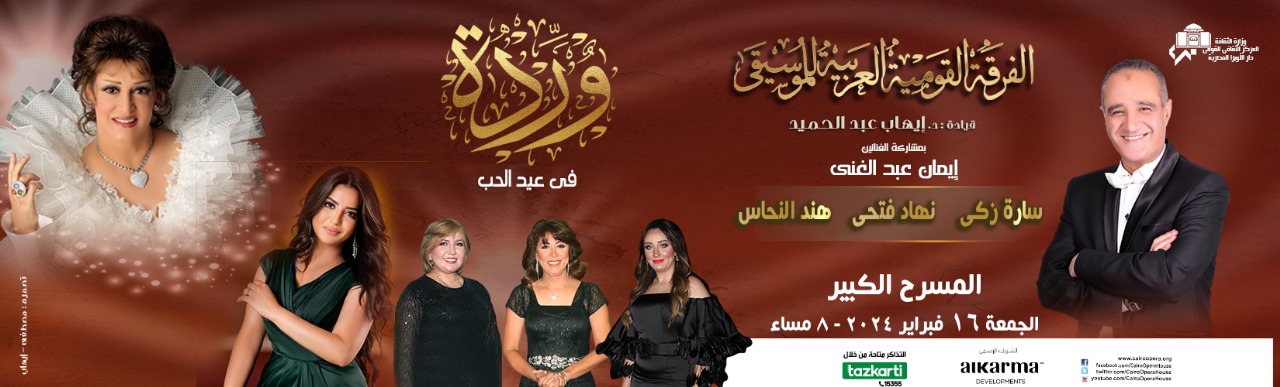 ومن المقرر ان يقام الحفل يوم الجمعة 16 فبراير على المسرح الكبير مع الفرقة القومية العربية للموسيقى بقيادة المايسترو إيهاب عبد الحميد.
