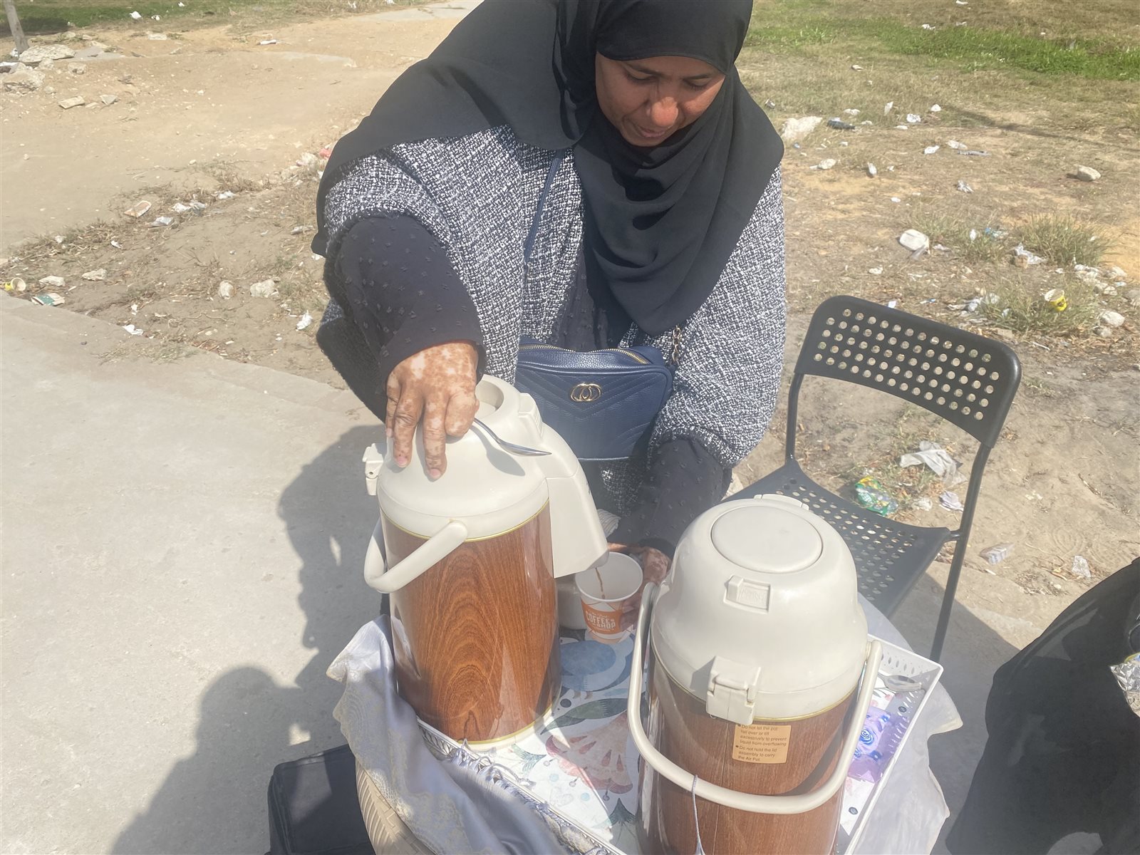 وتابعت قبول: “المصريين شعب أصيل، كثير من السيدات تأتى يوميًا لتجلس بجوارى وبيتكلموا معايا، ولذلك عمرى ما حسيت إني مغتربة، وبيع الشاى الكرك والقهوة العربى والدعم من إخواتى المصريين مخلينى أقدر أربى أطفالى وأصرف على إيجارى وبناكل وعايشين بأمان فى مصر".