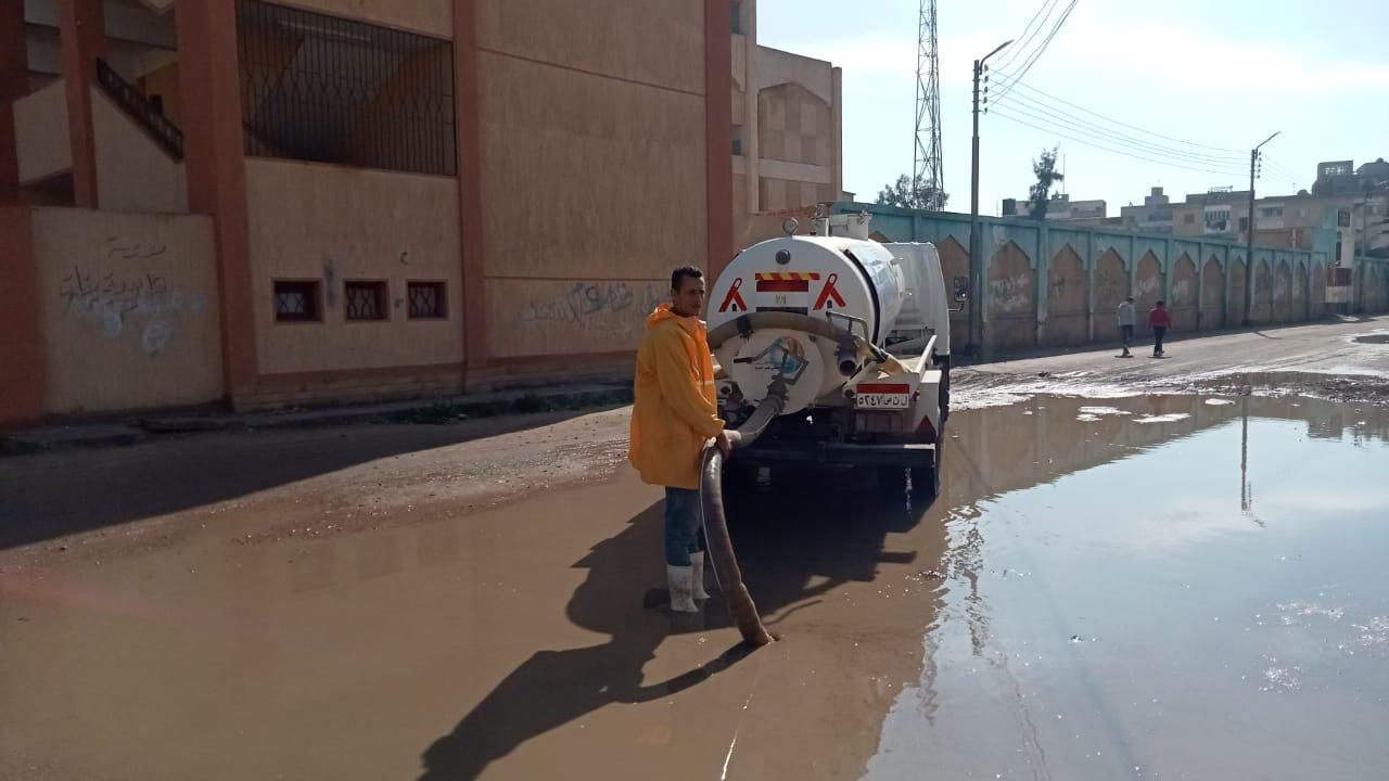 رفع تراكمات مياه الأمطار في بيلا بكفر الشيخ