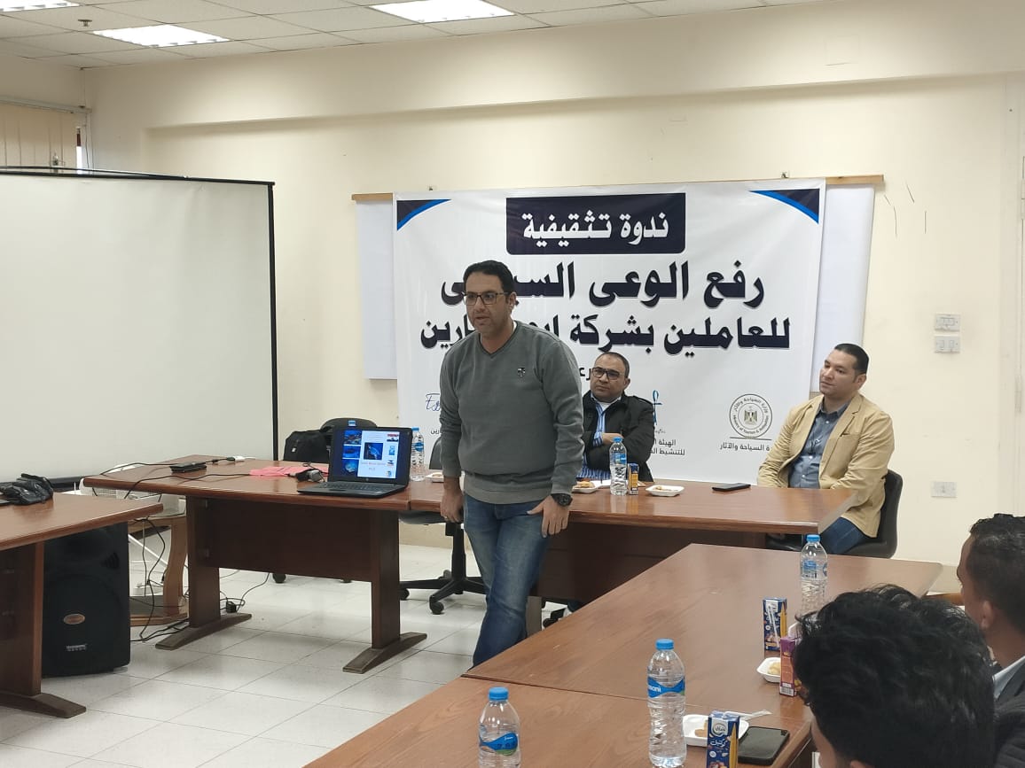 حيث نظمت هيئة تنشيط السياحة ندوات تثقيفية للعاملين بالمجال السياحى وذلك بمشاركة مركز النيل للاعلام بالغردقة فى نشر الوعى السياحى والإعلام .