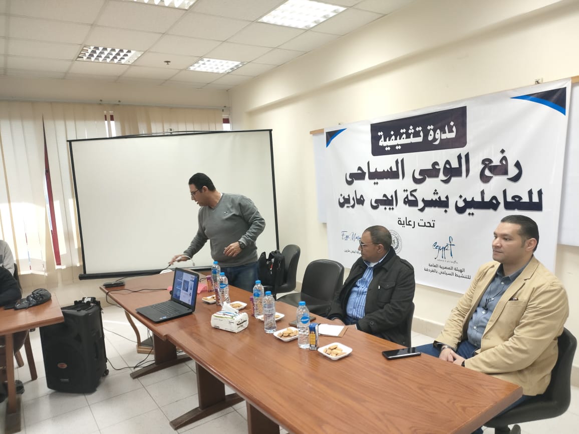 نظمت هيئة تنشيط السياحة بالبحر الأحمر بالتعاون مع شركة ايجى مارين عددًا من الندوات التوعوية للعاملين بالمجال السياحى بالغردقة ومنها الأنشطة البحرية .