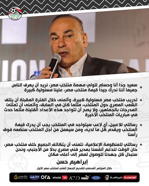 أبرز تصريحات إبراهيم حسن خلال المؤتمر الصحفي لتقديم الجهاز الفني لمنتخب مصر