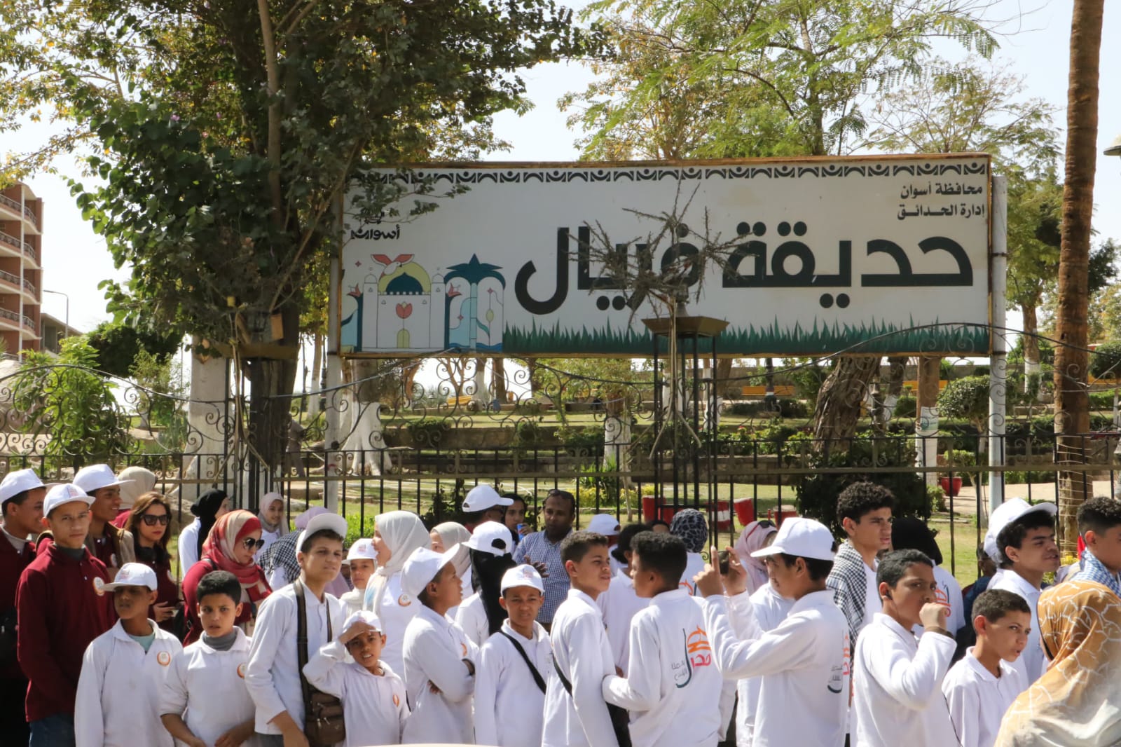 بدأت الفعاليات بجولة بالحديقة تعرف خلالها الأطفال عبر الشروح المقدمة لهم على الحديقة التي تقع على ربوة عالية خضراء على ضفاف النيل عند الطرف الجنوبي لكورنيش مدينة أسوان، وتطل على بعض المناظر الأثرية، وتعد واحدة من المتنزهات التي يقبل عليها أبناء المدينة وضيوفها، وقد تم إنشاؤها على مساحة 7 أفدنة، في 1944، وسميت باسم الأميرة فريال، الابنة الكبرى للملك فاروق، وجمعت بين الصخور الجميلة، التي تتوسط الحديقة ونهر النيل والأشجار الخضراء.