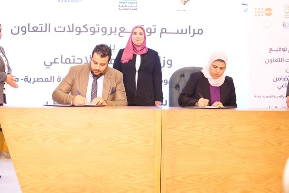 هذا وشهدت الفعالية توقيع بروتوكولي تعاون بين وزارة التضامن الاجتماعى وشركة صادكو وشركة آي صاغة في ظل مسئولية الشراكة المجتمعية وفى إطار الحرص على الشراكة مع القطاع الخاص من أجل تحفي الشباب والفتيات لتلقى تدريبات مودة المتخصصة للمخطوبين بالتعاون مع صندوق الأمم المتحدة للسكان بمحافظات القاهرة الكبرى لتقديم حزمة من التيسيرات والتأهيل للمقبلين على الزواج ممن تم اجتيازهم تدريبات مودة وأيضًا الإعلان الدائم والمستمر عن خدمات مشروع مودة والمنصة الإلكترونية له.