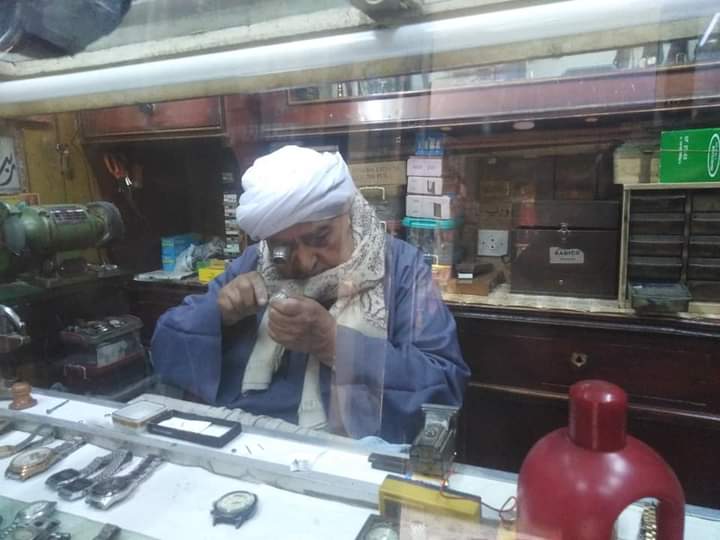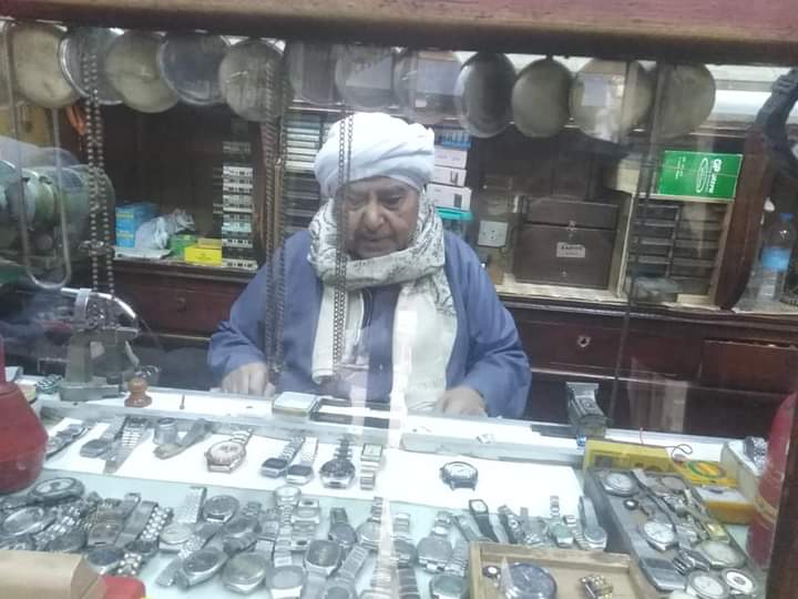 فى محل تبدوا عليه عراقة الزمن الماضى وبساطة بنيان وألوان الحاضر، فمنذ أن تقع عيناك عليه تشعر من الوهله الأولى وكأن الزمن عاد بك إلى حقبة الخمسينيات من القرن الماضى، فى محل صغير بشارع الجنينة إحدى اقدم الشوارع التجارية بمدينة نجع حمادى بمحافظة قنا، يقبع الحاج محمد سلمان جاد العسقلاني، صاحب ال ٧٨ عاماً الذى عشق المهنة منذ أن وطأت قدماه على الدنيا، شرب سر الصنعه على يدى والده، الذى غرث فيه محبتها فى قلبة، وتمر الايام وتصبح صنعه صيانة وبيع الساعات المورد الأساسى والرئيسى لدخله اليومى الذى استطاع من خلاله تكوين أسرة وتربية أبنائه من خلالها.