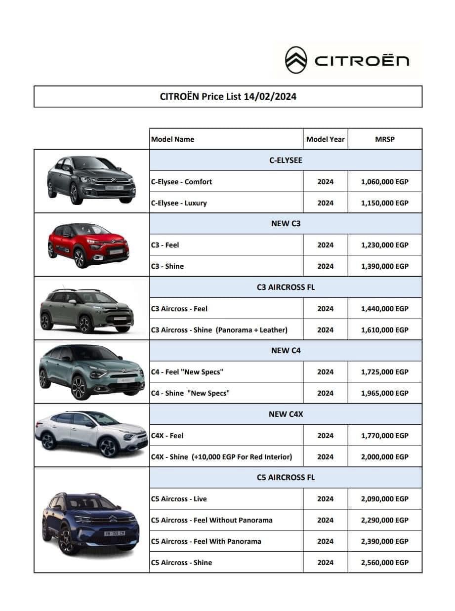 أسعار سيارات ستروين موديل 2024