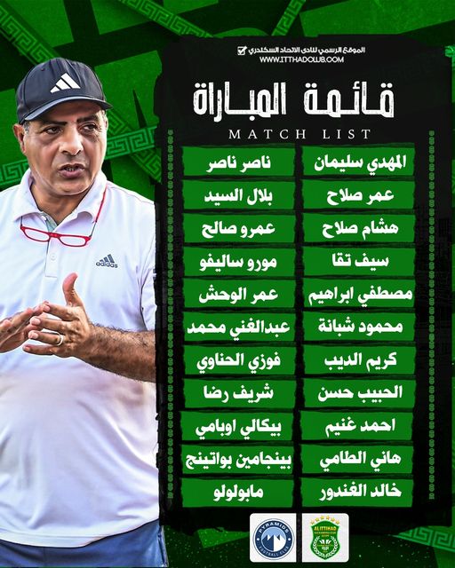 أعلن طارق العشري، المدير الفني للاتحاد السكندري، القائمة الأساسية الذي سيخوض بها مباراته المقبلة أمام بيراميدز، ضمن منافسات الدوري المصري الممتاز.