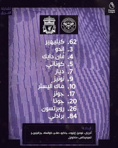 جاء تشكيل ليفربول لمواجهة برينتفورد في الدوري الإنجليزي كالتالي: