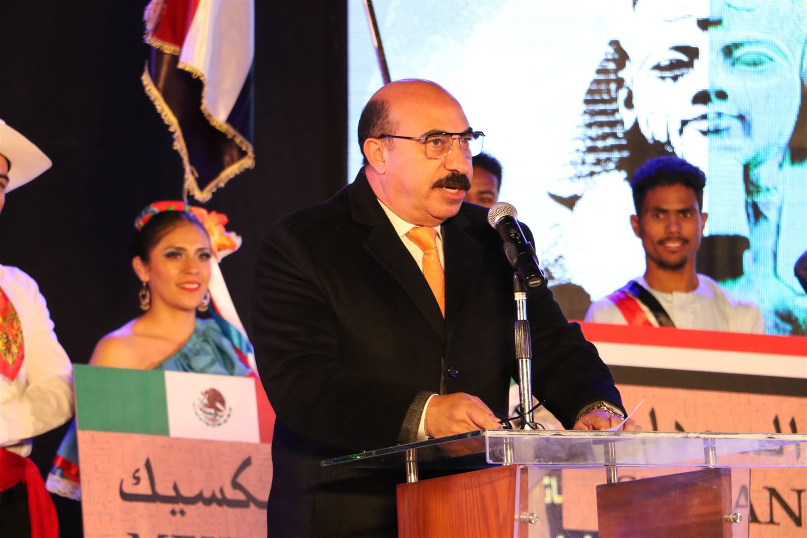 من جهته نقل عمرو البسيوني رئيس الهيئة، تحية الدكتورة نيفين الكيلاني وزيرة الثقافة للحضور، مقدما شكره للوزيرة ومحافظ أسوان على الدعم والرعاية الكبيرة للمهرجان الدولي، ومرحبا بأعضاء مجلس النواب وضيوف الحفل، وأوضح أن مهرجان أسوان يعد واحدًا من أهم مهرجانات وزارة الثقافة، كونه يجمع ألوان الفنون الشعبية، ويبرز بوضوح دور الفنون كقوة ناعمة ولغة مشتركة للشعوب، بما تقدمه من رسائل محبة وسلام للجميع، واختتم كلمته بتوجيه الشكر للقيادات والزملاء بالهيئة القائمين على الإعداد والتنفيذ للمهرجان، ولقطاع العلاقات الثقافية الخارجية والجهات المتعاونة كافة.