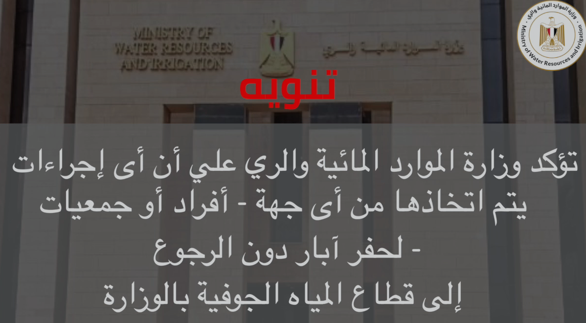 وزارة الري: الرجوع لأجهزتنا المعنية حال رغبة بعض الجمعيات حفر آبار مياه جوفية