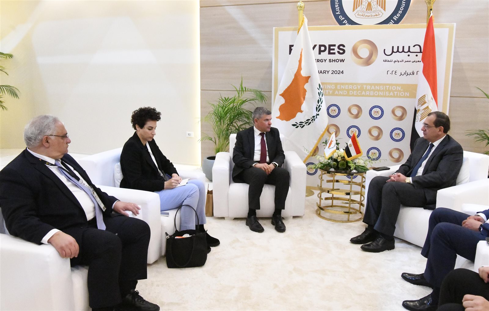 عقد المهندس طارق الملا وزير البترول والثروة المعدنية جلسة مباحثات مع نظيره القبرصي جورج باباناستاسيو وزير الطاقة بحثا خلالها تعزيز التعاون والتكامل بين البلدين تحت مظلة منتدي غاز شرق المتوسط في ظل تنامي اكتشافات الغاز الطبيعى في قبرص و توافر البنية التحتية لقطاع الغاز في مصر .