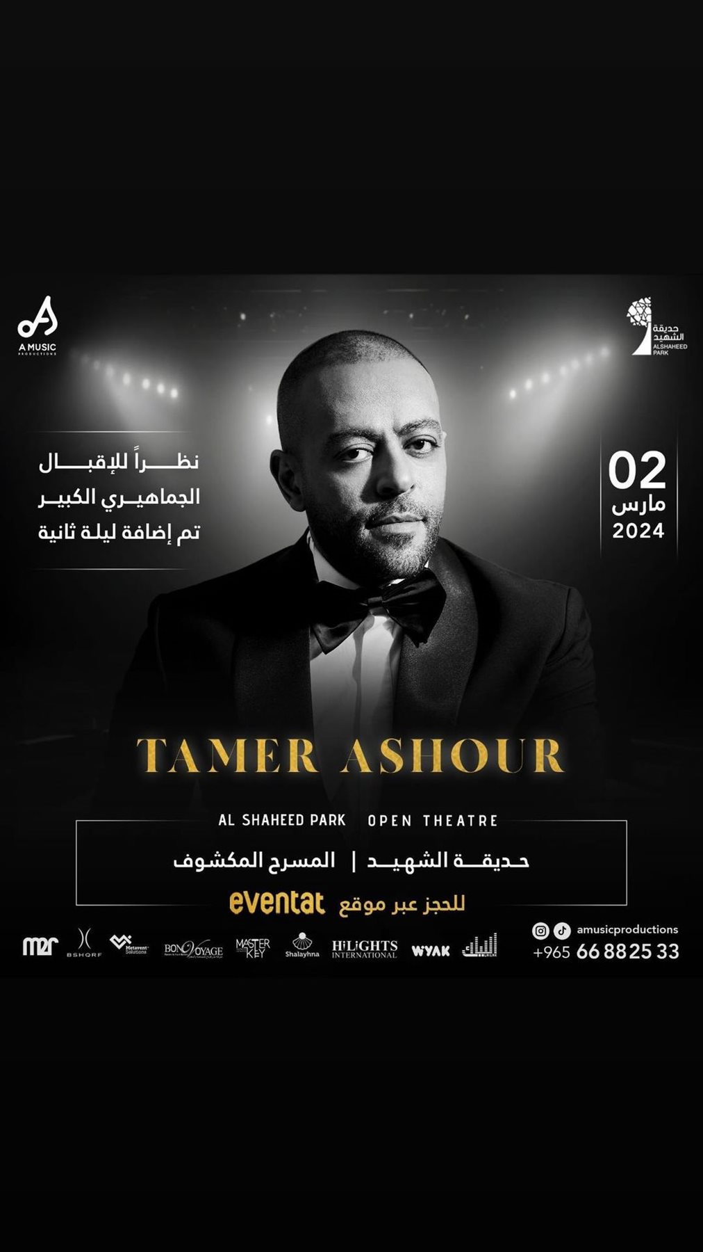 يستعد الفنان تامر عاشور لأمسية غنائية ثانية في الكويت، بعدالإقبال الجماهيري الكبير على الأولى ونفاد تذاكرها سريعًا.