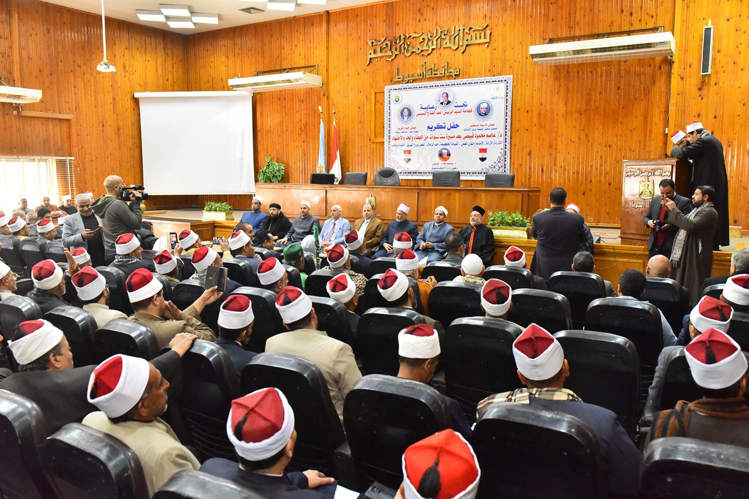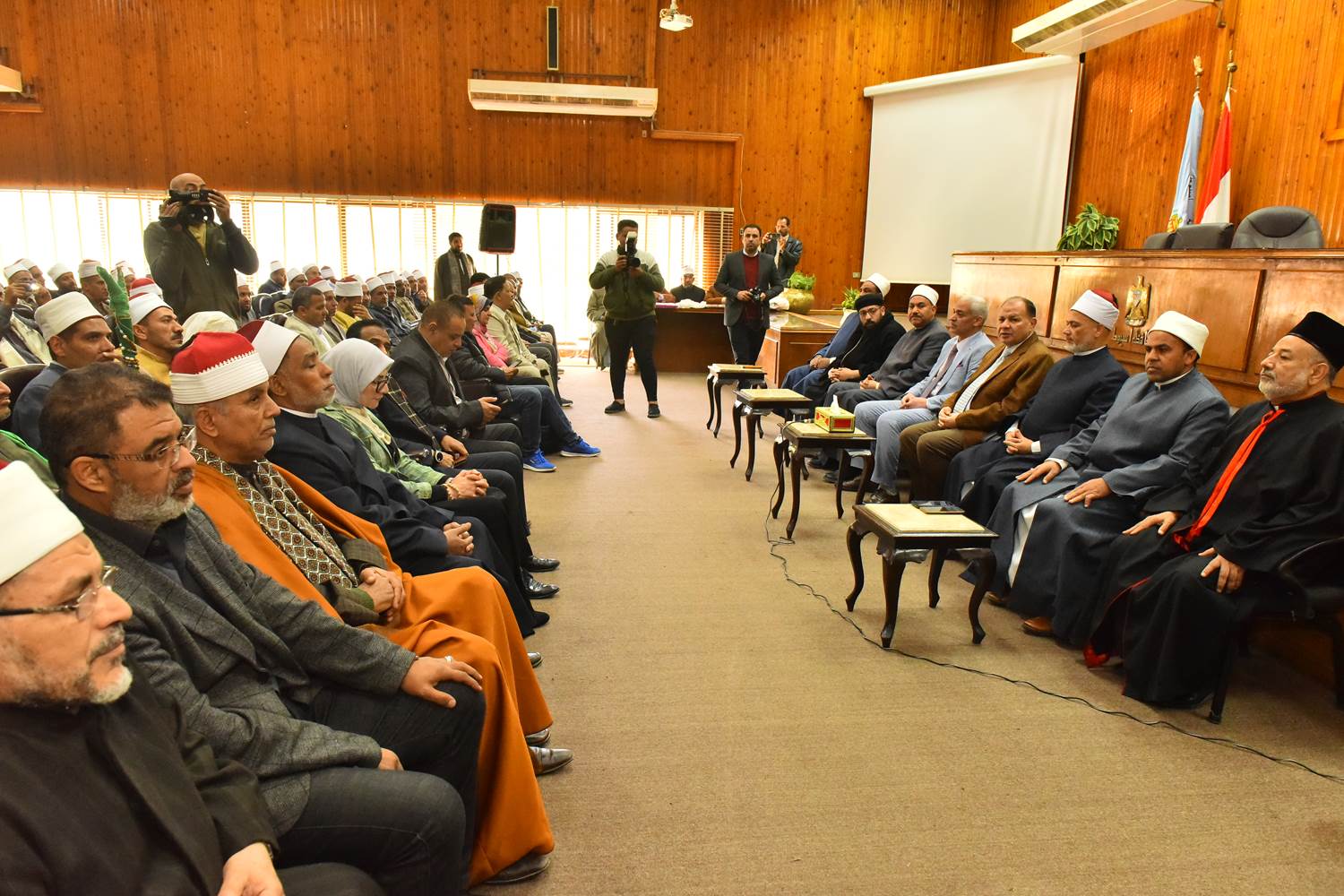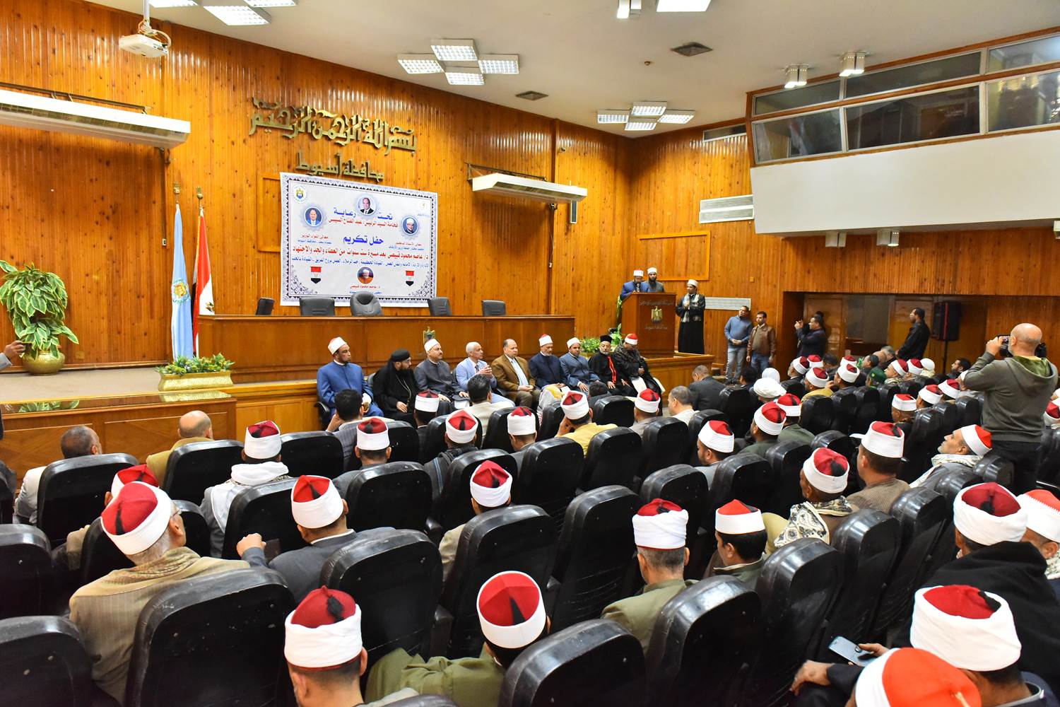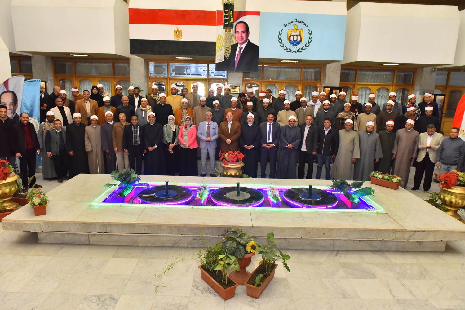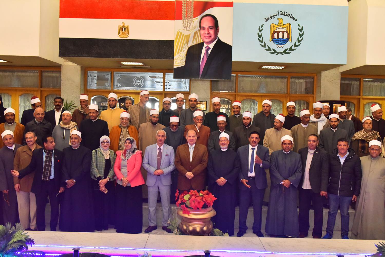 جاء ذلك بحضور الدكتور أحمد عبدالمولى نائب رئيس الجامعة لشئون التعليم والطلاب والمحاسب عدلي أبوعقيل سكرتير عام المحافظة المساعد والدكتور محمود جاهين وكيل وزارة الأوقاف الجديد بأسيوط والشيخ سيد عبدالعزيز أمين بيت العائلة المصرية بأسيوط والقس عاموس بسطا ممثلًا عن الكنيسة الارثوذوكسية والقس إيليا رمسيس وكيل مطرانية الاقباط الكاثوليك بأسيوط والشيخ محمد عبداللطيف مدير عام الدعوة بالمديرية والشيخ ناصر محمد مدير عام المتابعة بمديرية الأوقاف ومديري إدارات الأوقاف بالمراكز وجميع كبير من الأئمة والشيوخ والصفحيين والاعلاميين.